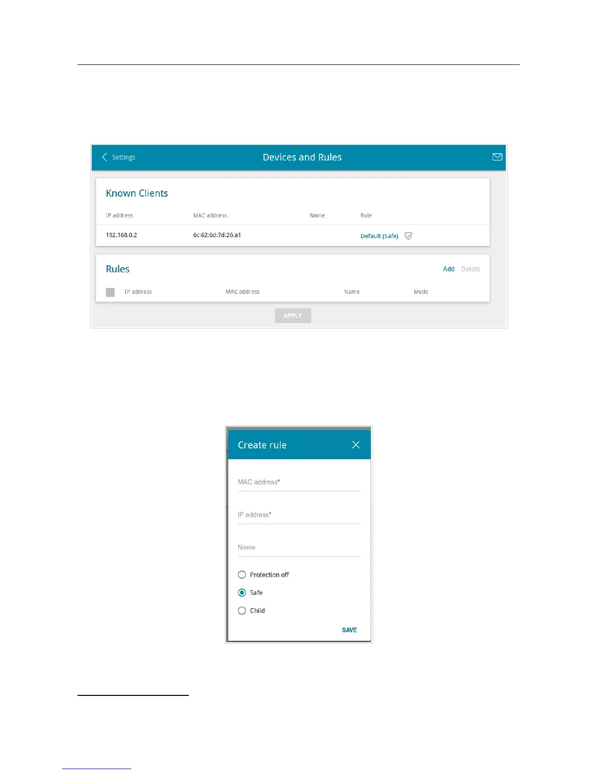 Figure 167. The Yandex.DNS / Devices and Rules page.