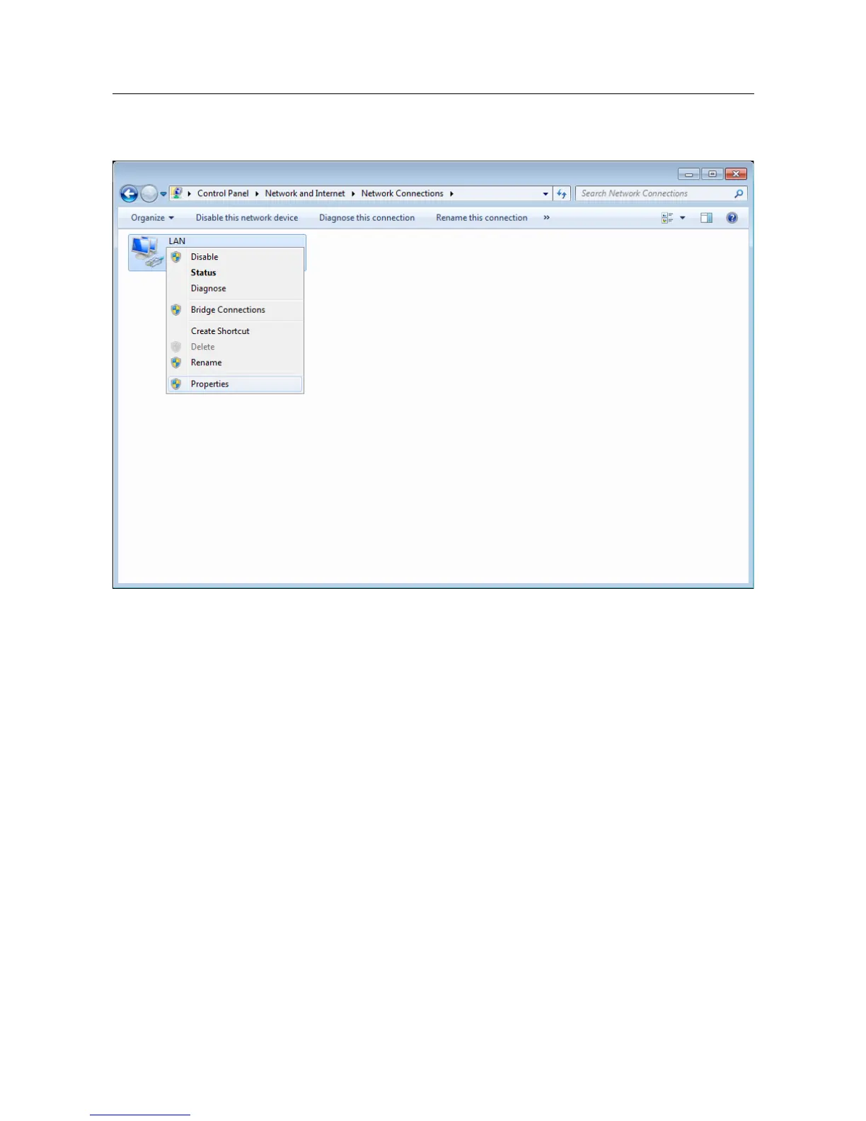4. In the opened window, right-click the relevant Local Area Connection icon and select