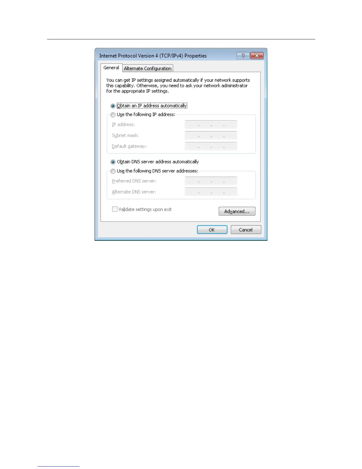 Figure 10. The Internet Protocol Version 4 (TCP/IPv4) Properties window.
