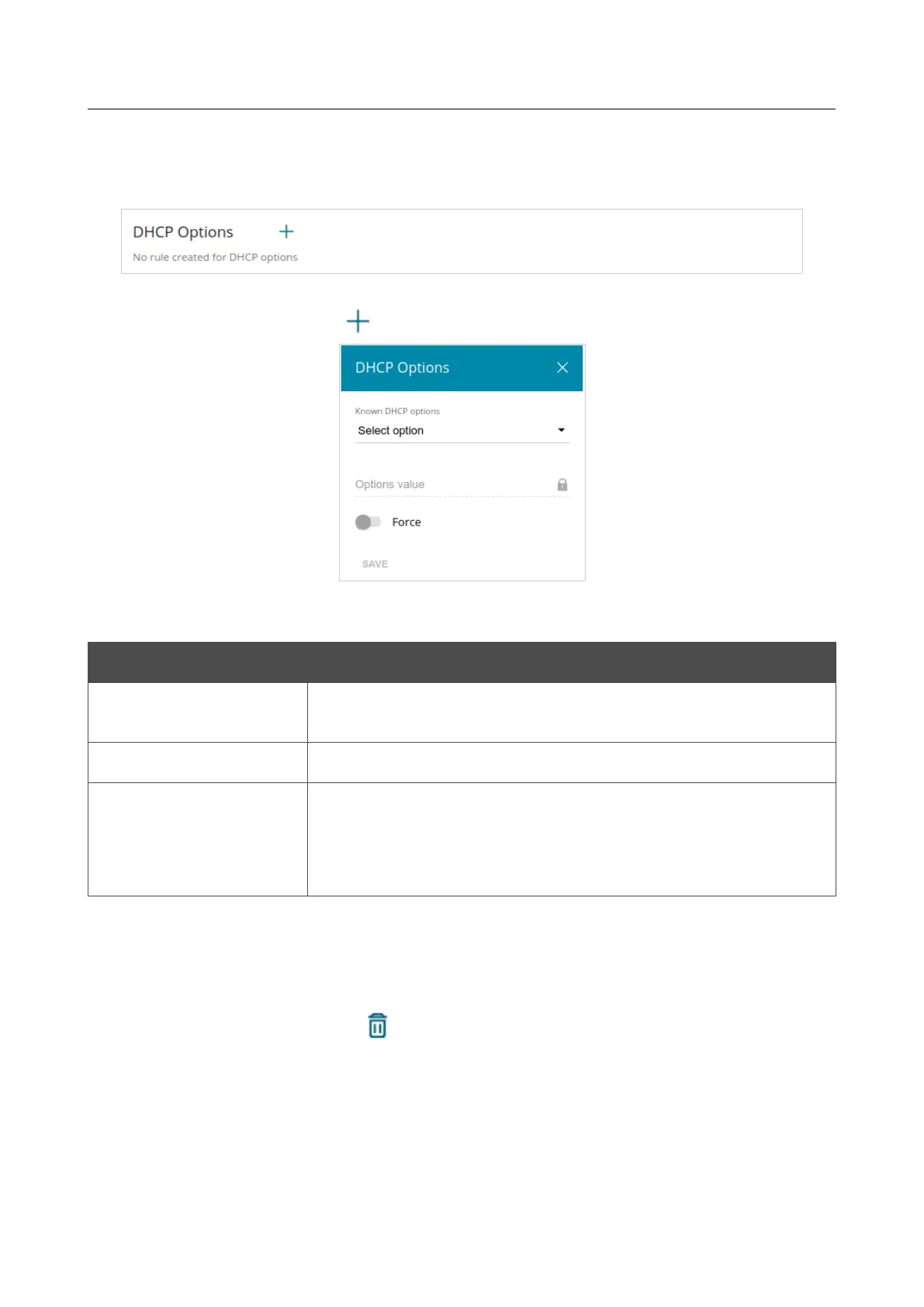 In the DHCP Options section, you can change default values for some options of DHCP protocol