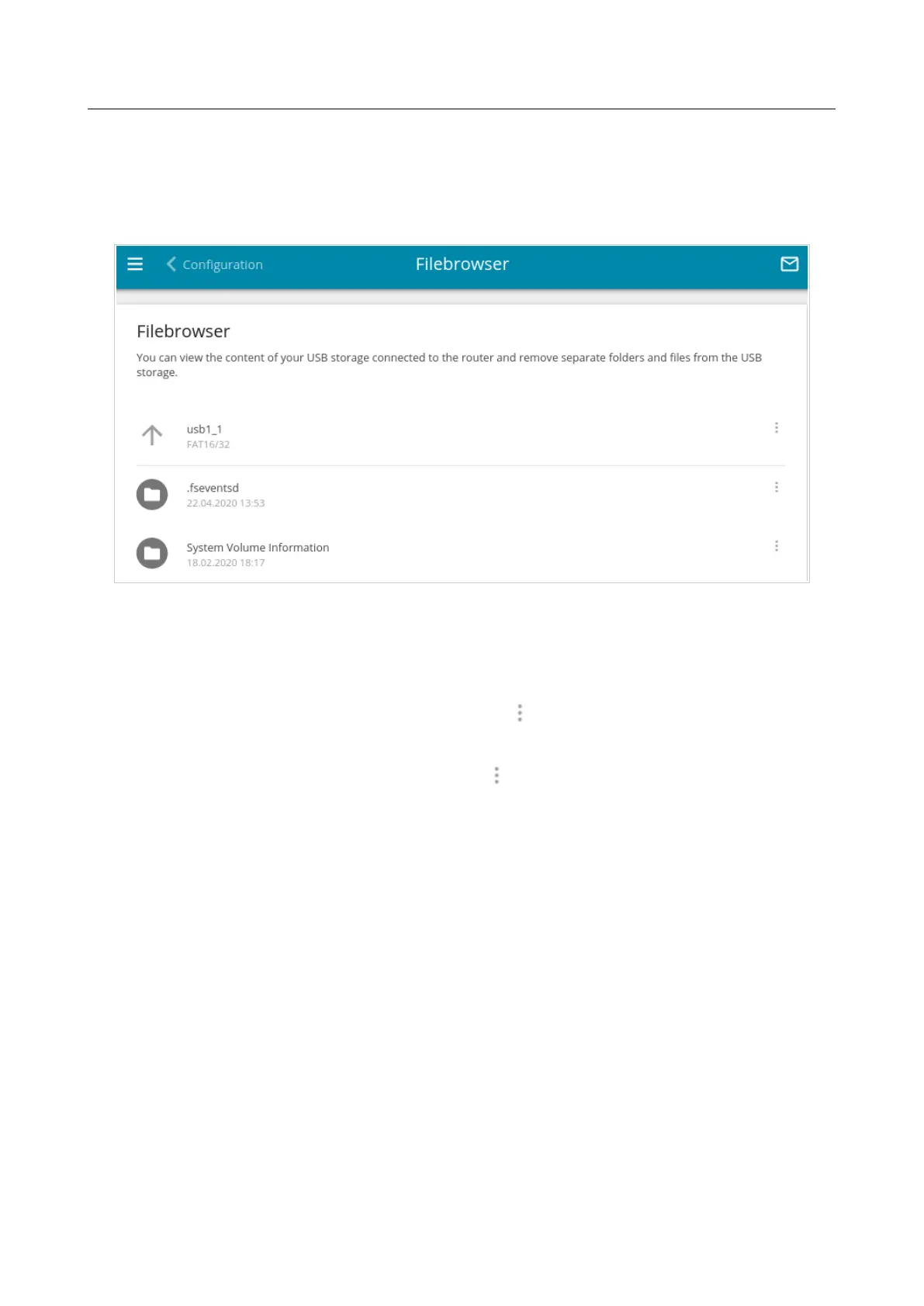 On the USB Storage / Filebrowser page, you can view the content of your USB storage