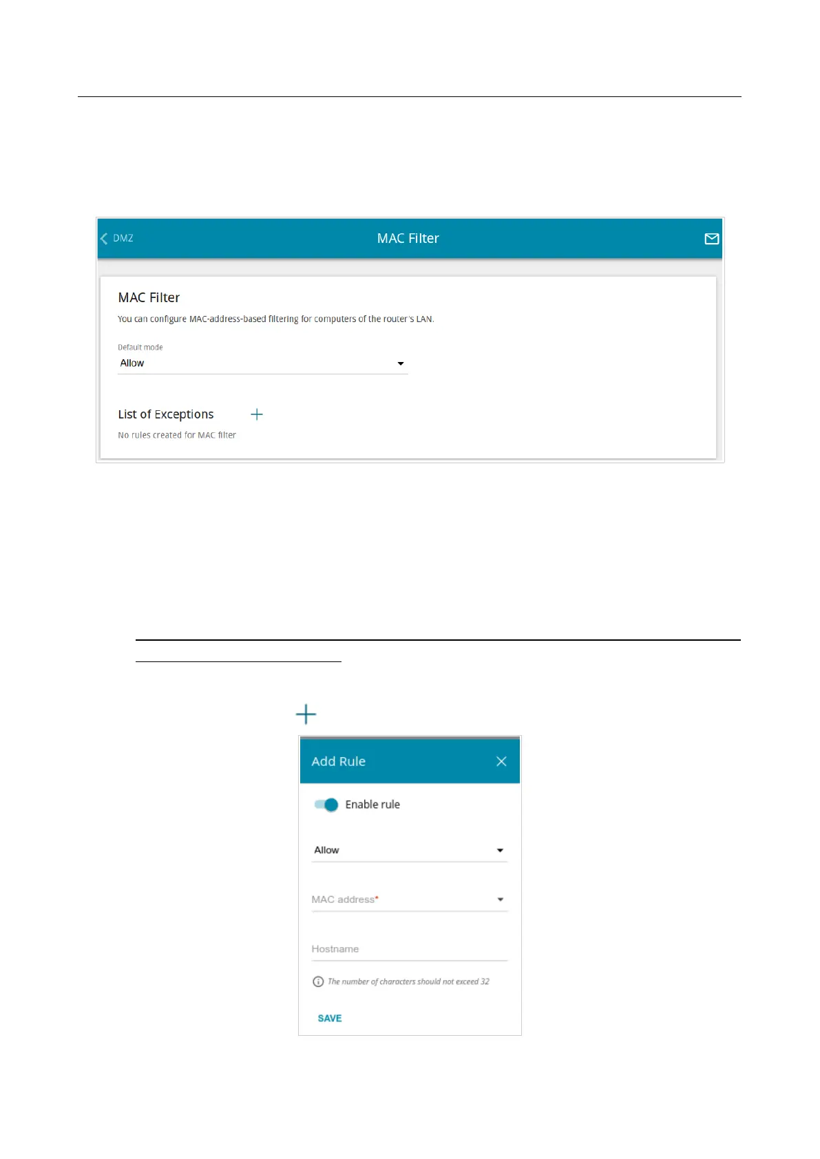 To create a rule (specify a MAC address of a device for which the specified filtering mode will be