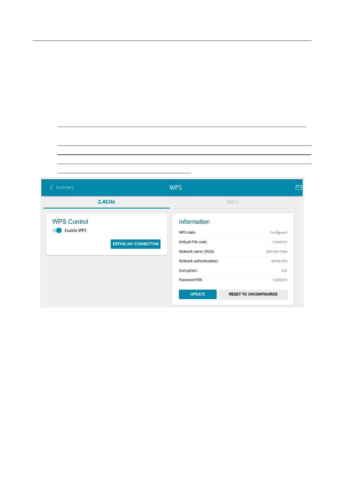 To activate the WPS function, on the tab of the relevant band, move the Enable WPS switch to the