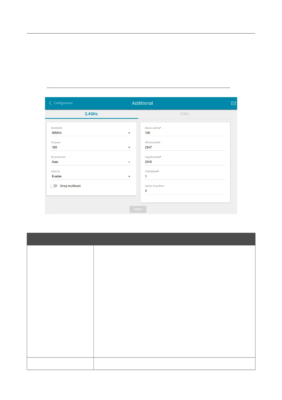 On page of the Wi-Fi / Additional section, you can define additional parameters for the WLAN of