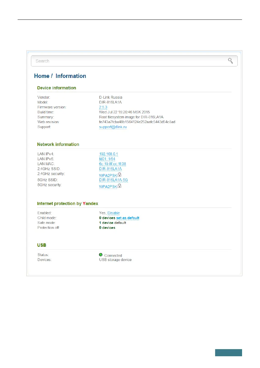 After the device has rebooted, the Home / Information page in the access
