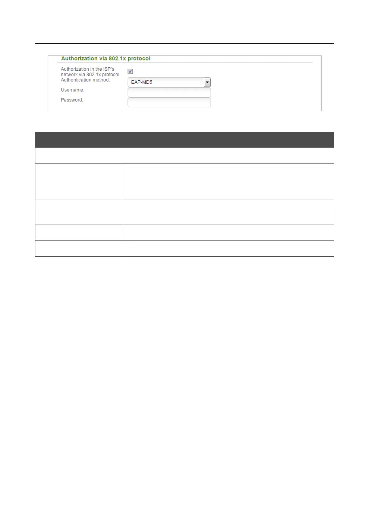 Figure 85. The page for creating a new Static IP connection. The Authorization via 802.1x protocol