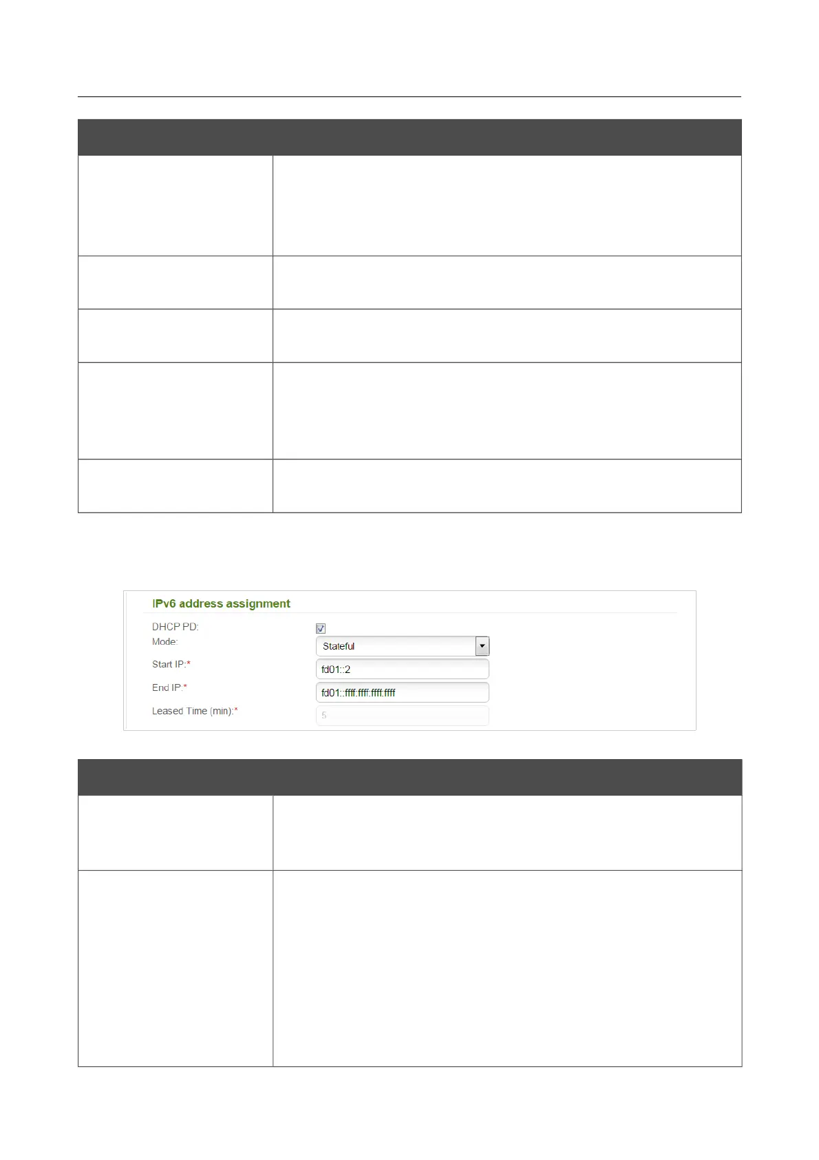 In the IPv6 address assignment section, you can configure the built-in the DHCPv6 server of