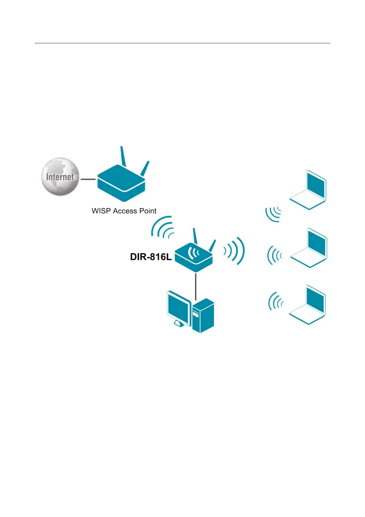 The “client” function in the router mode allows using DIR-816L as a WISP repeater.