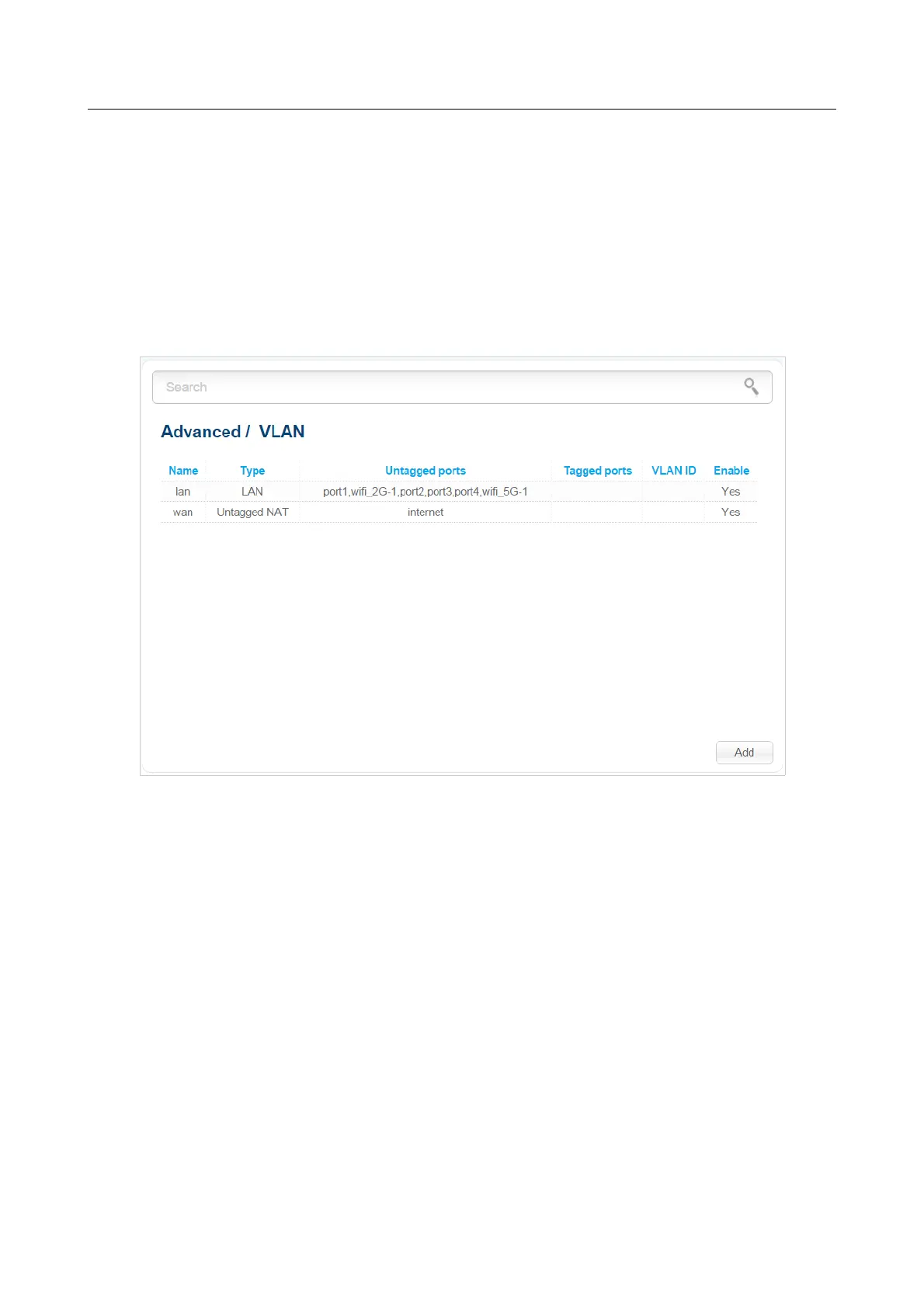 • wan: for the WAN interface; it includes the INTERNET port. You can edit or delete this