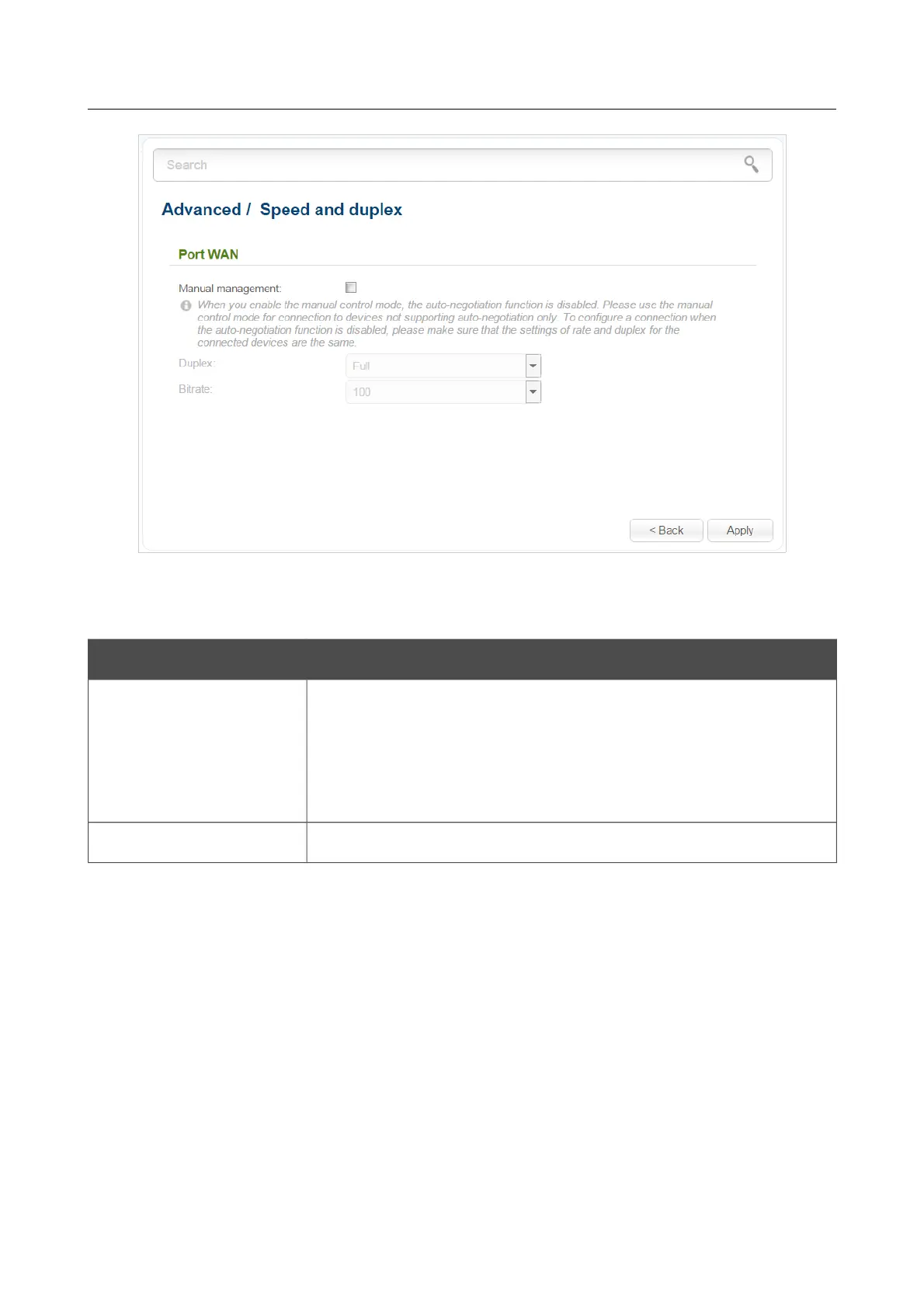 To enable autonegotiation for the router's port again, select the port in the table and deselect the