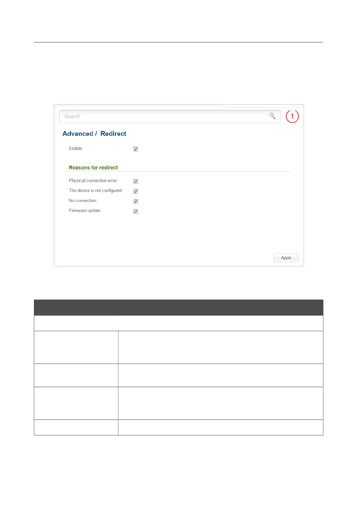 Figure 136. The Advanced / Redirect page.