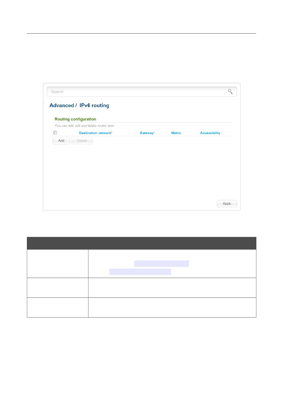 To create a new route, click the Add button. In the line displayed, you can specify the following