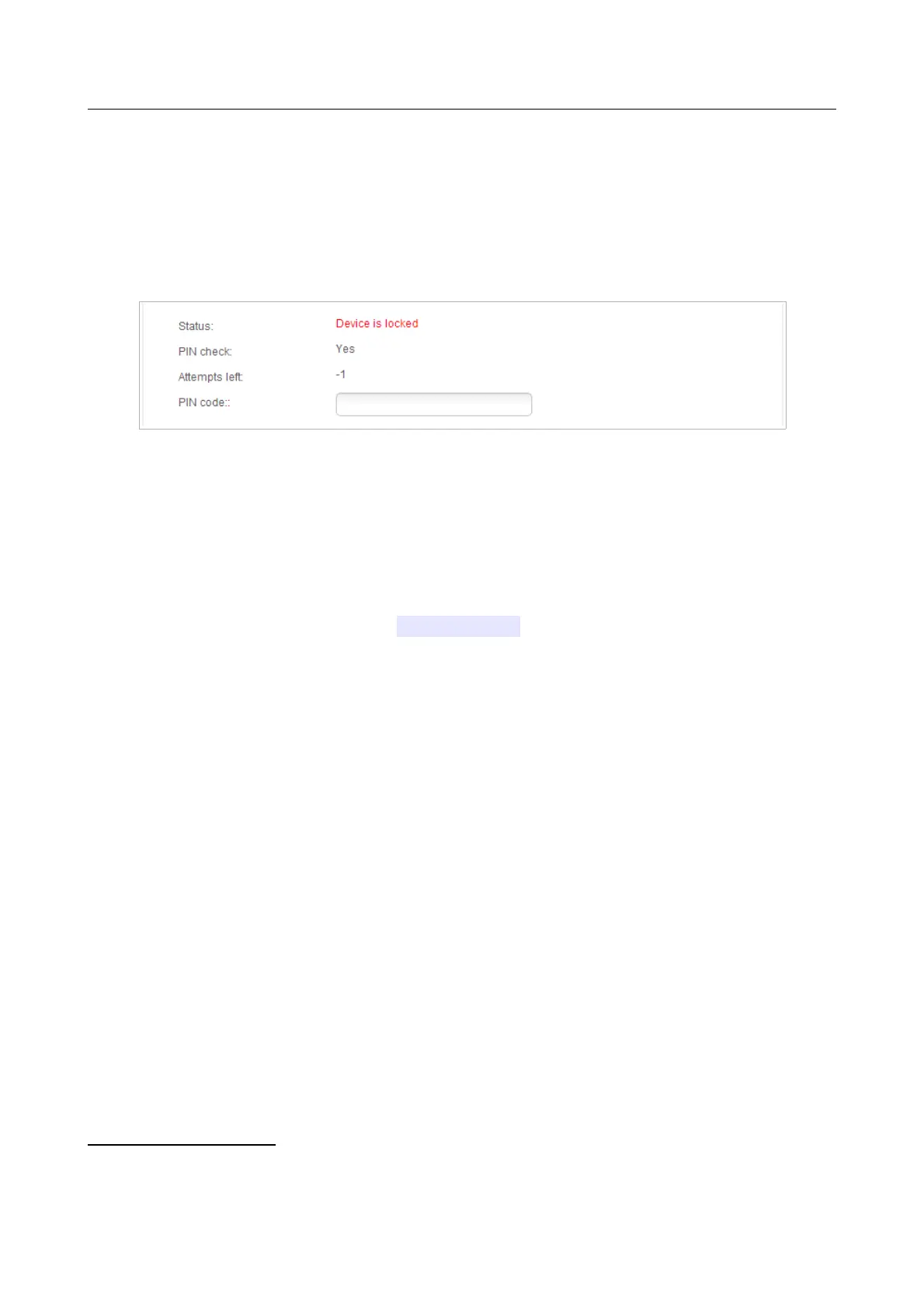 the 3G/LTE modem / PIN section. On the opened page, enter the PIN code in the PIN code field
