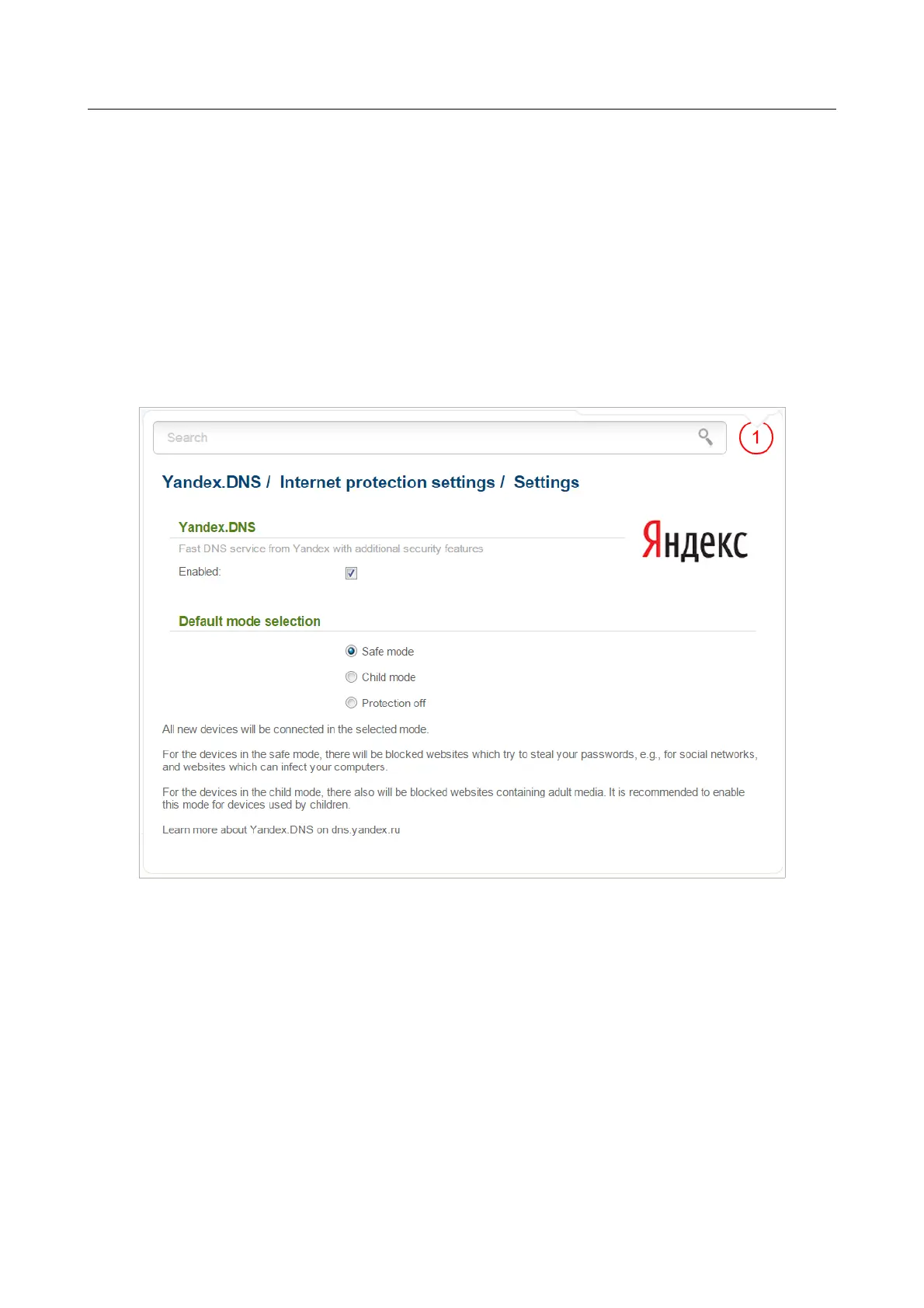 Figure 169. The Yandex.DNS / Internet protection settings / Settings page.