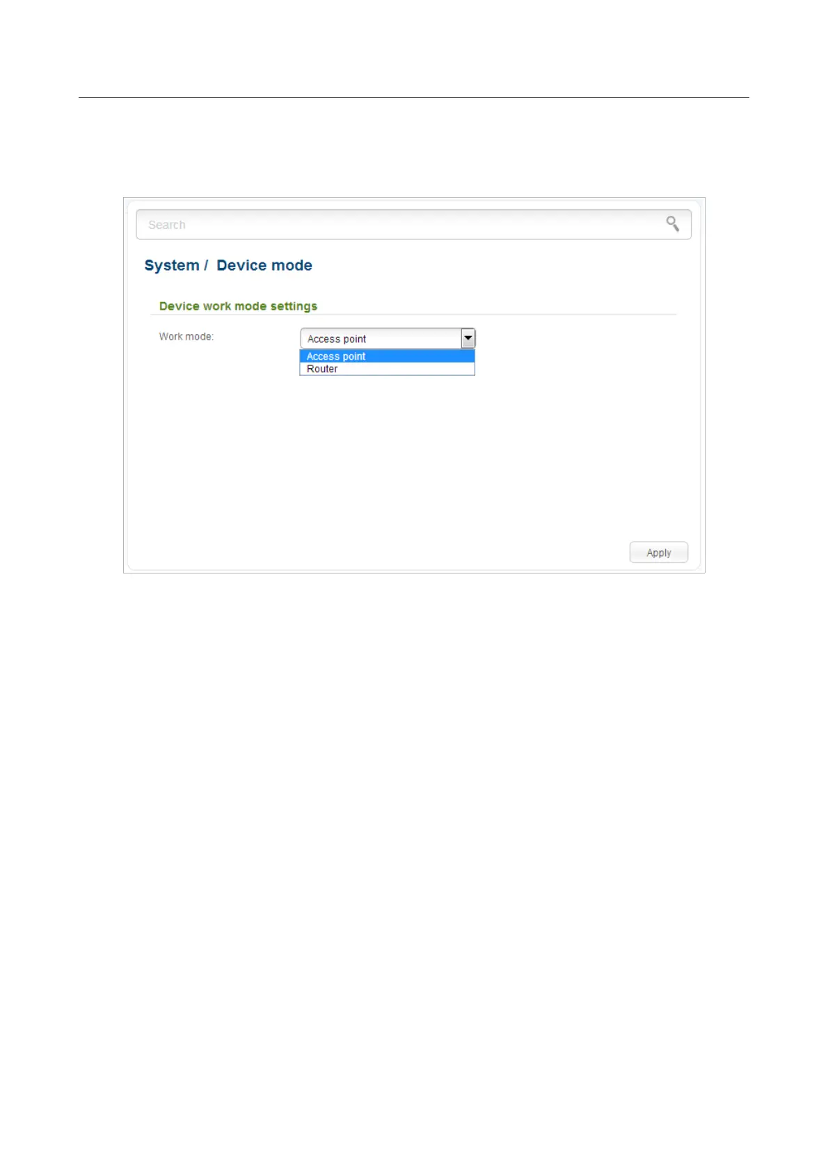 To switch the device to the other mode, select the Access point value from the Work mode
