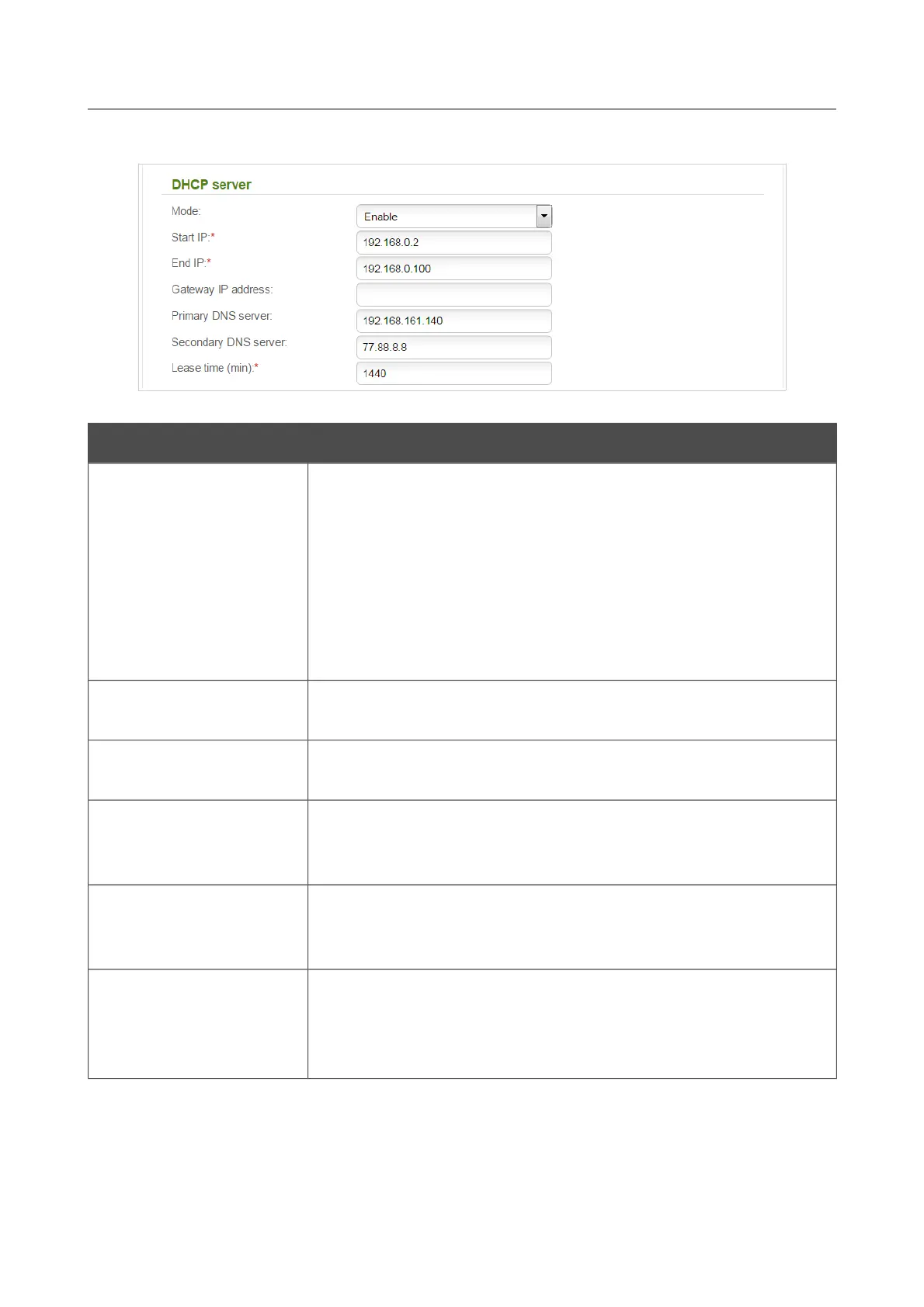 In the DHCP server section, you can configure the built-in DHCP server of the router.