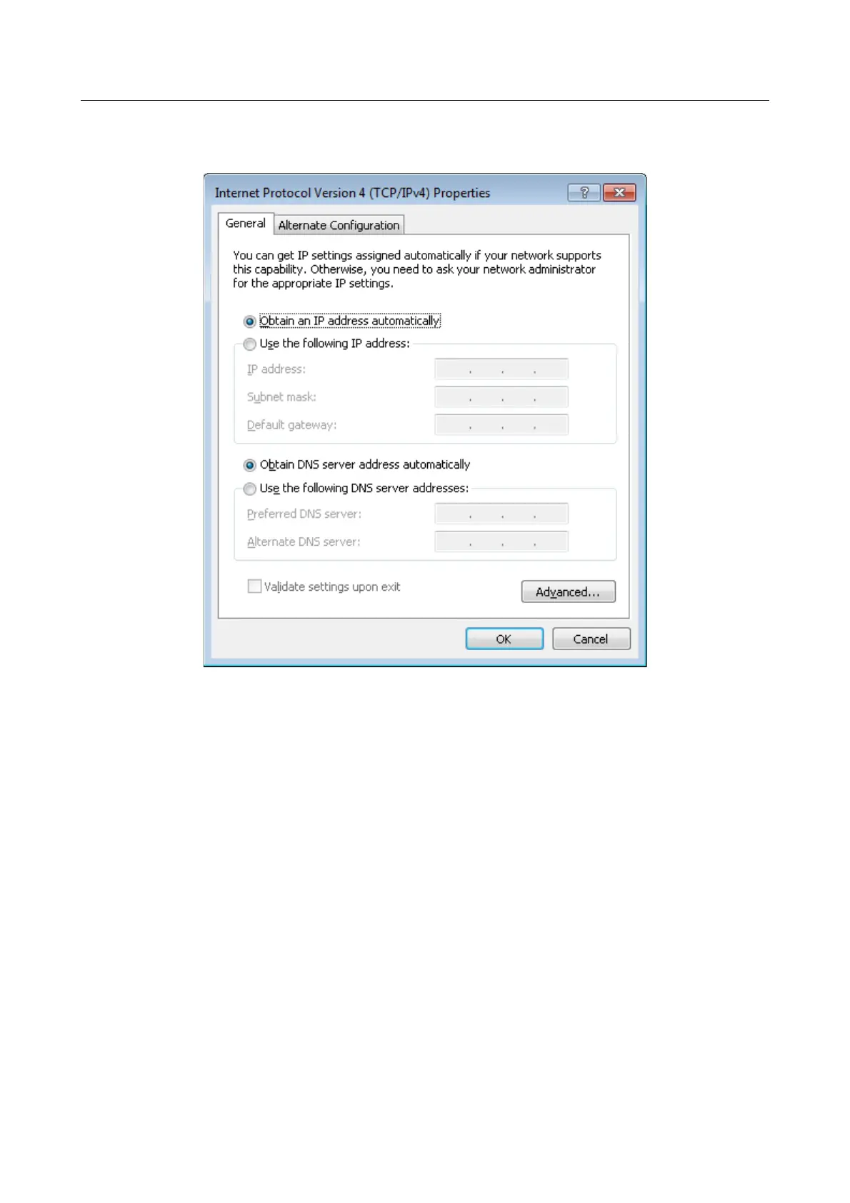 Figure 11. The Internet Protocol Version 4 (TCP/IPv4) Properties window.