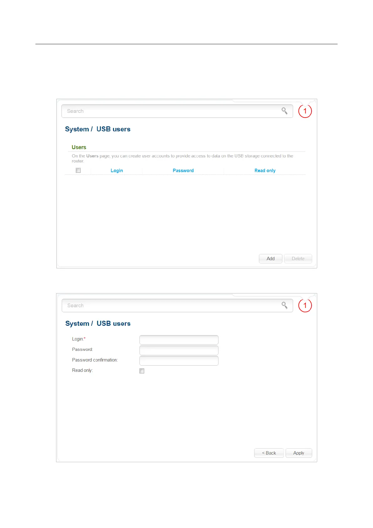 On the System / USB users page, you can create user accounts to provide access to data on the