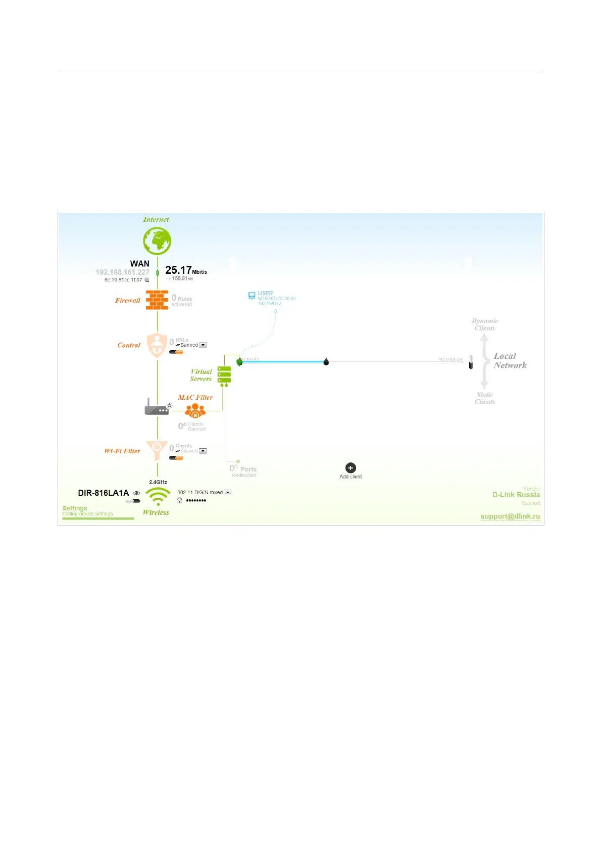 The page displays an interactive scheme which illustrates the router's settings and the LAN