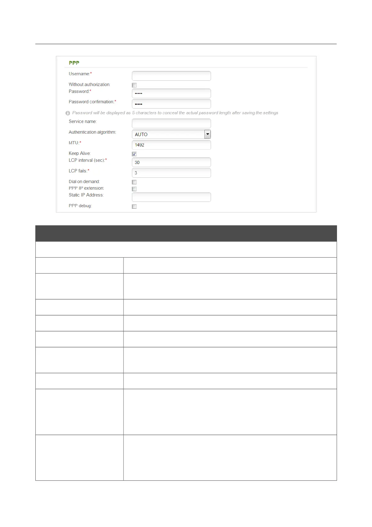 Figure 73. The page for creating a new PPPoE connection. The PPP section.