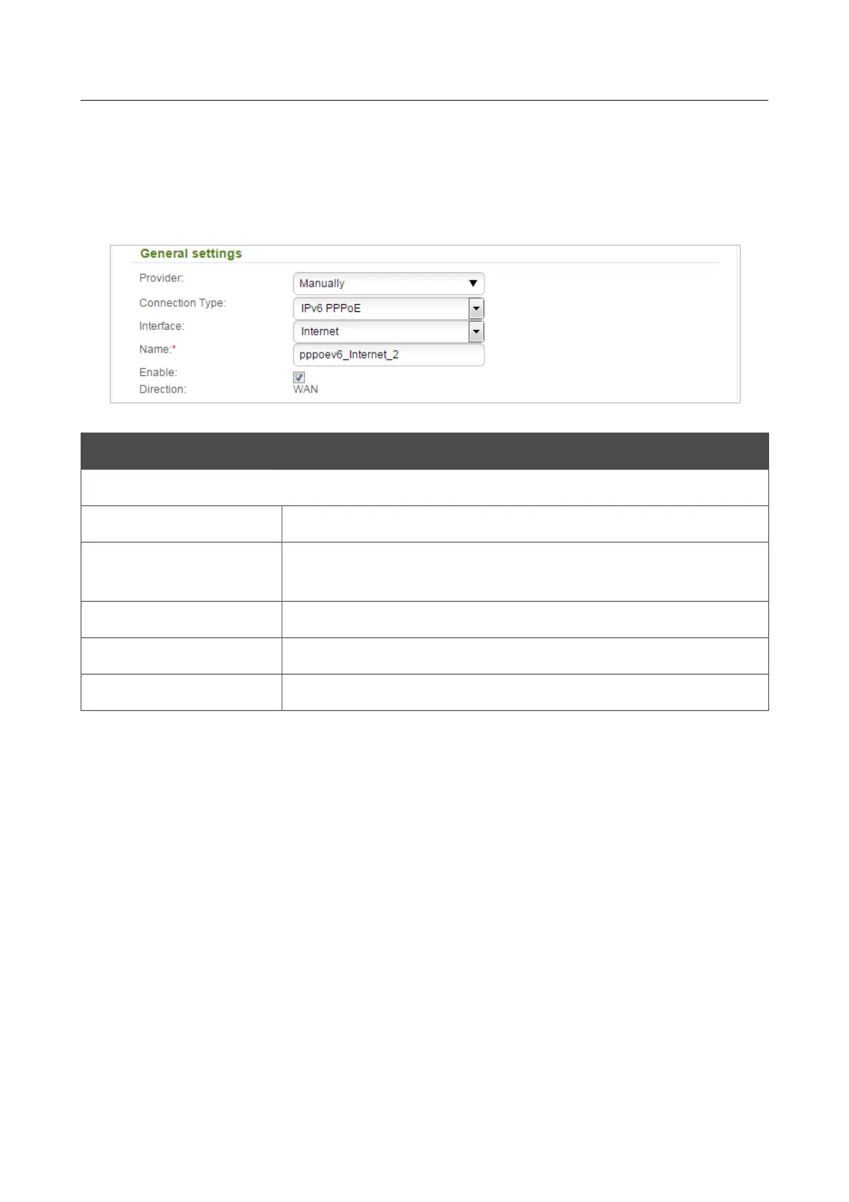 Figure 75. The page for creating a new IPv6 PPPoE connection. The General settings section.