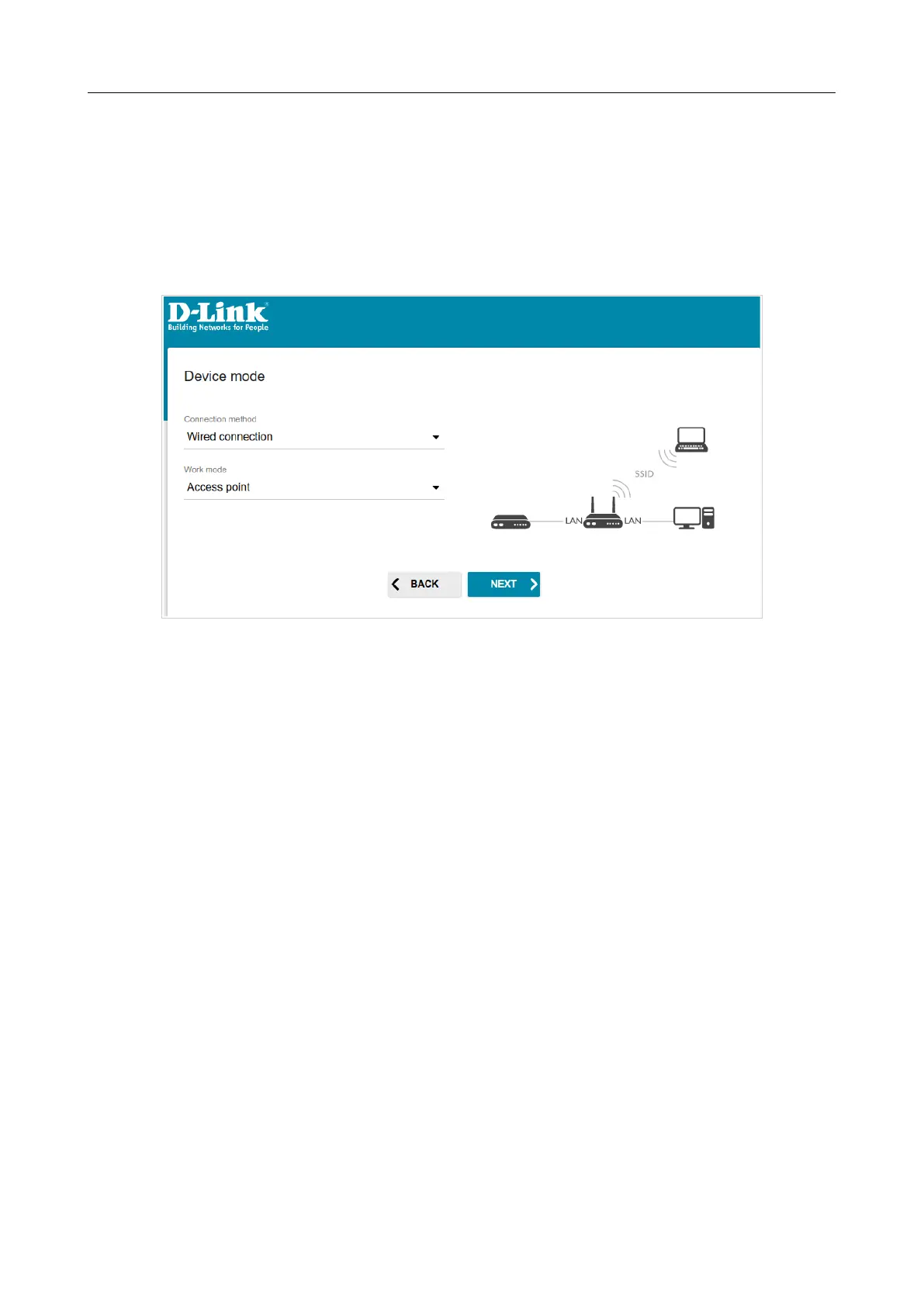 connection value. Then from the Work mode list select the Access point value. In this mode