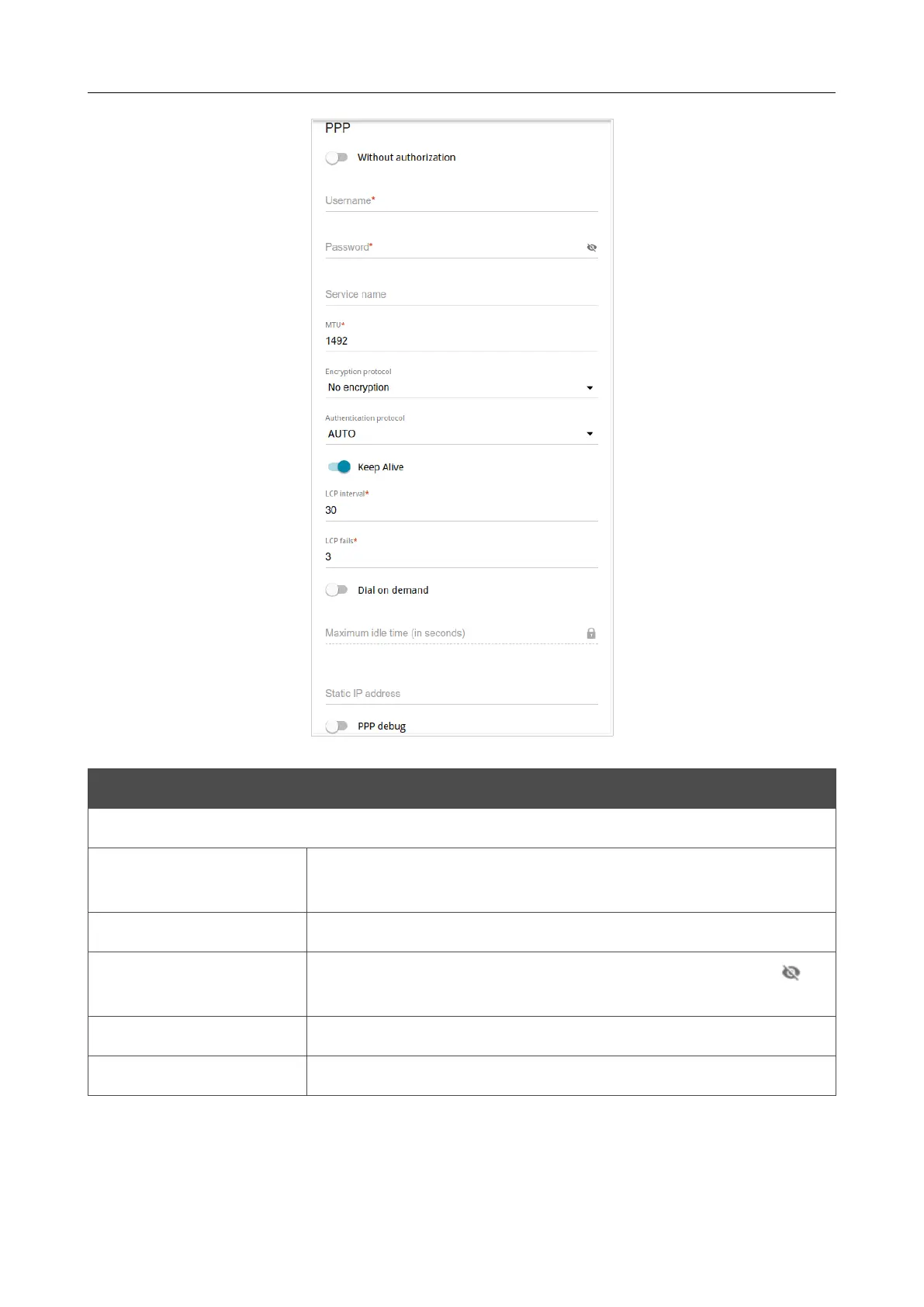 Figure 71. The page for creating a new PPPoE connection. The PPP section.