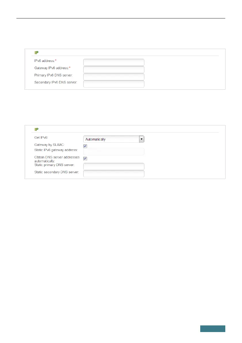 12. For connection of Static IPv6 type: in the IP section, fill in the IPv6