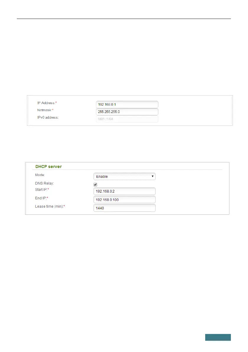IPv4 addresses, disable the DHCP server (select the Disable value from