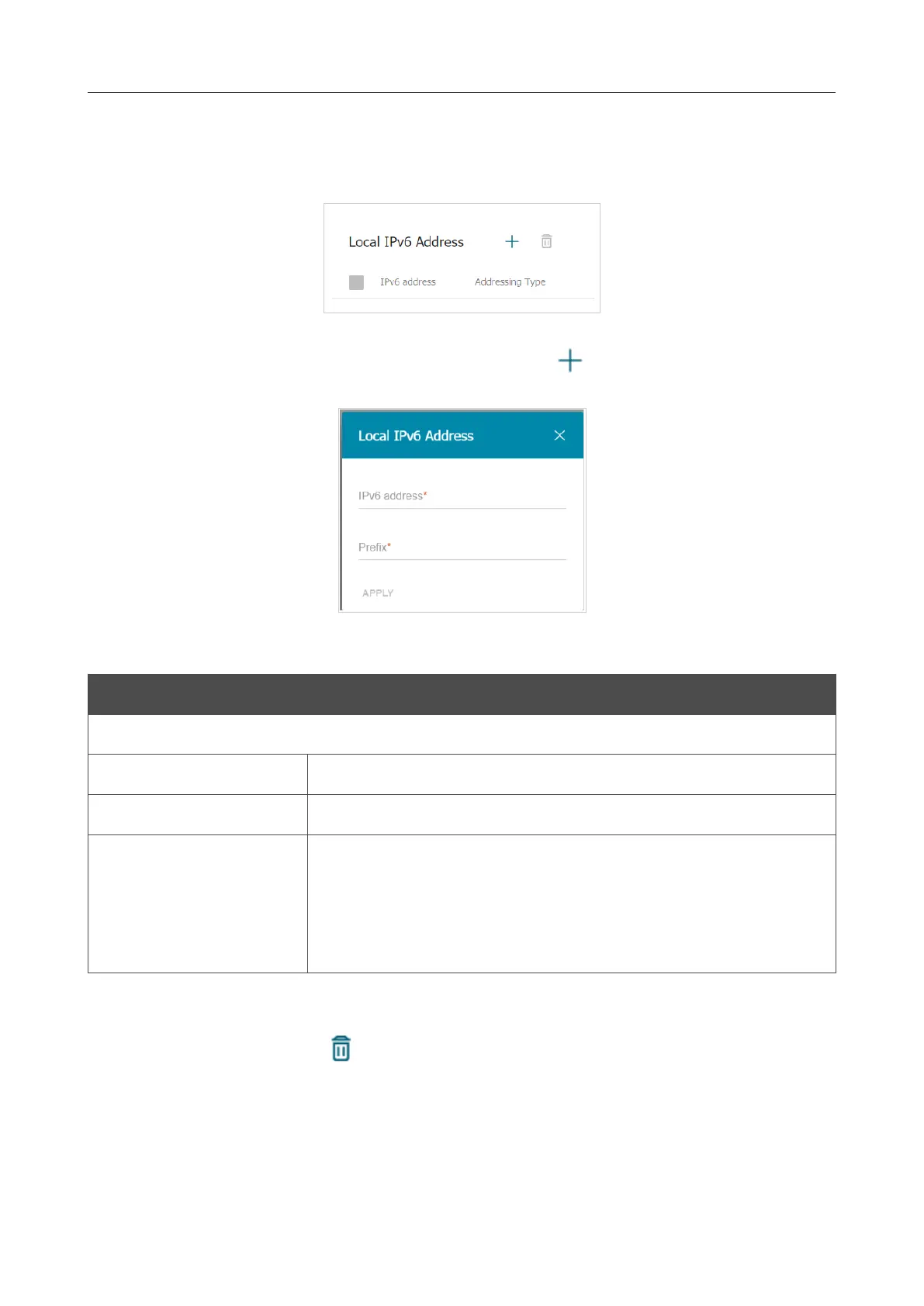 To add an IPv6 address of the router, click the ADD button ( ). To change the IPv6 address of
