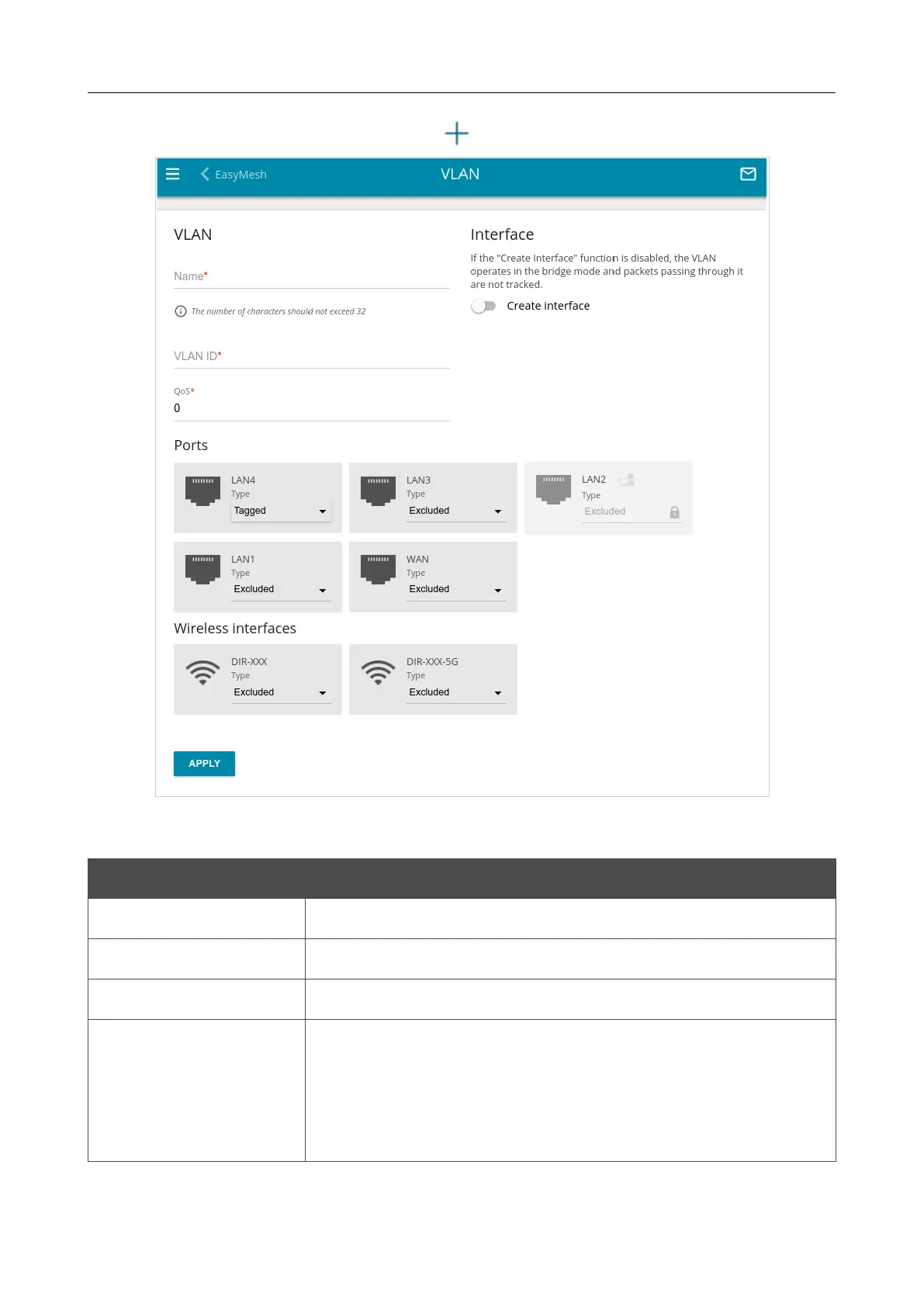 To create a new VLAN, click the ADD button ( ).