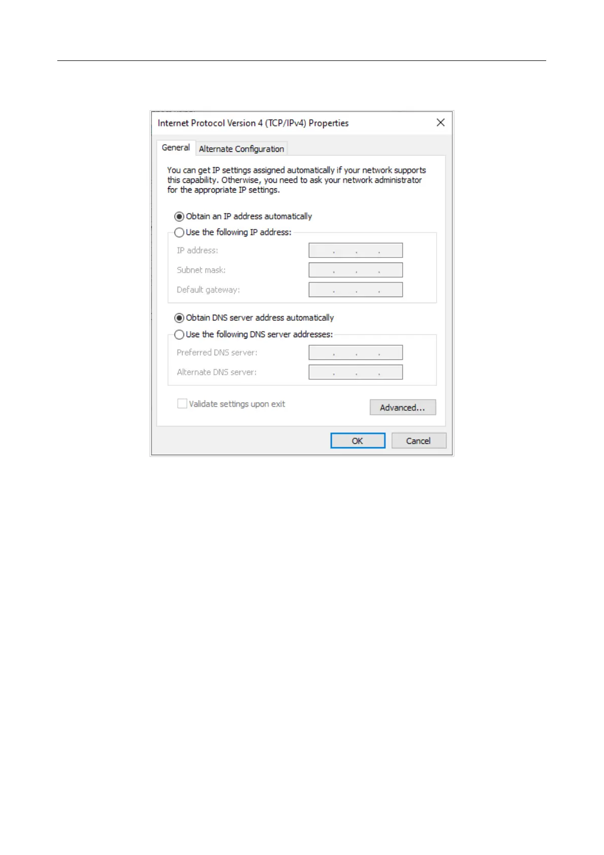 Figure 12. The Internet Protocol Version 4 (TCP/IPv4) Properties window.