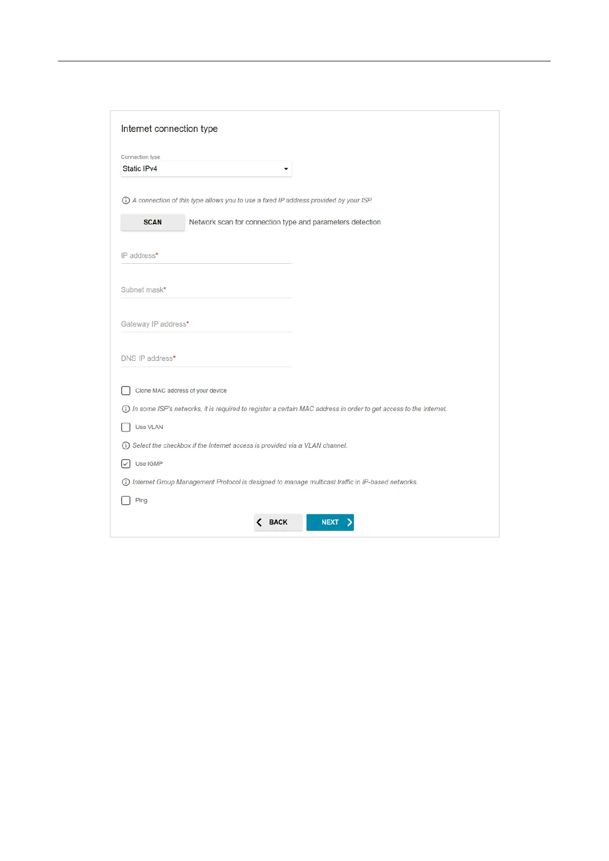 Figure 43. The page for configuring Static IPv4 WAN connection.