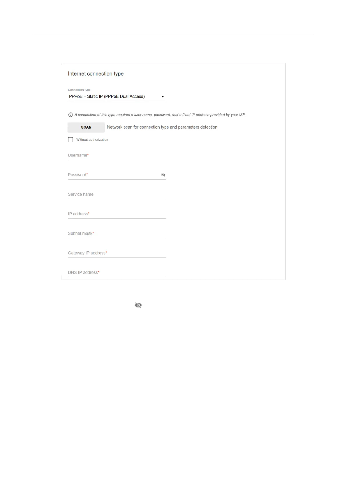 your ISP. Click the Show icon ( ) to display the entered password. If authorization is not