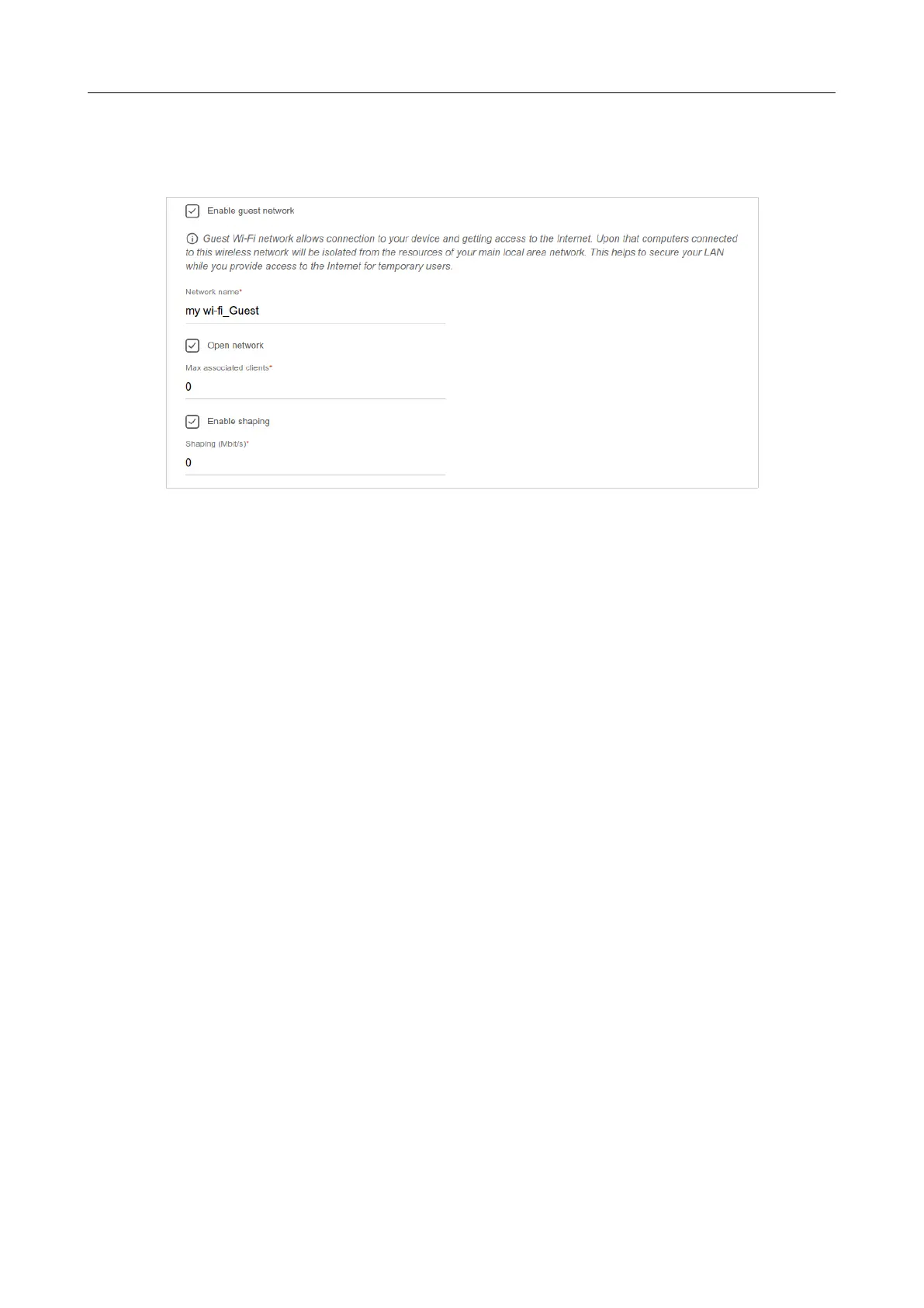 6. In the Network name field, specify your own name for the guest wireless network or leave