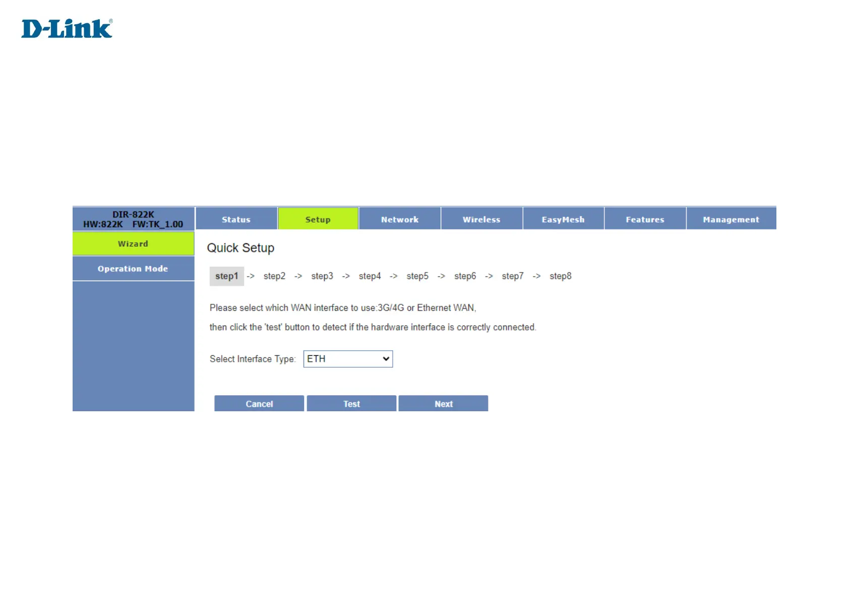 This Section displays the “Quick Setup Wizard” which is used during first time setup.
