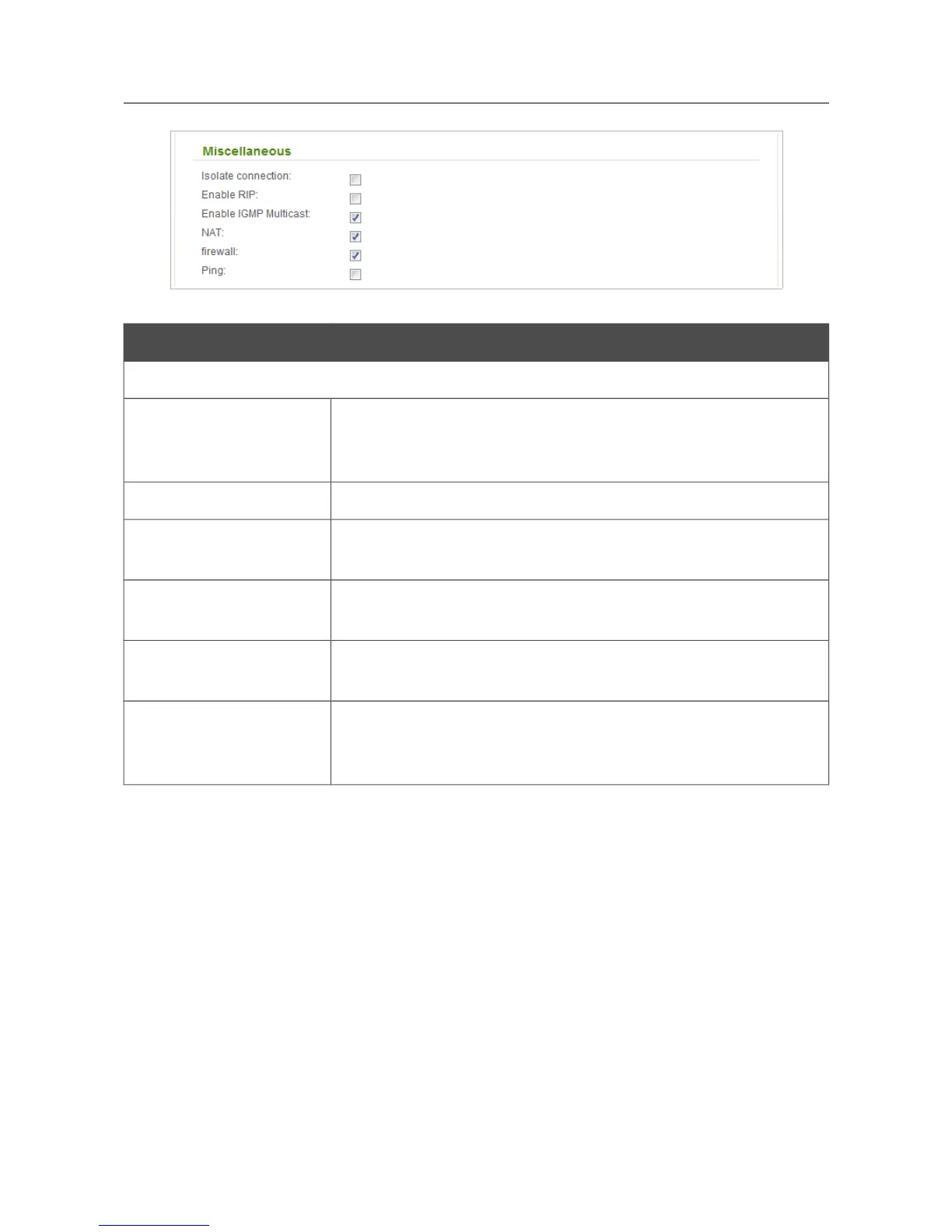 table for this connection. Select the checkbox only when your ISP
