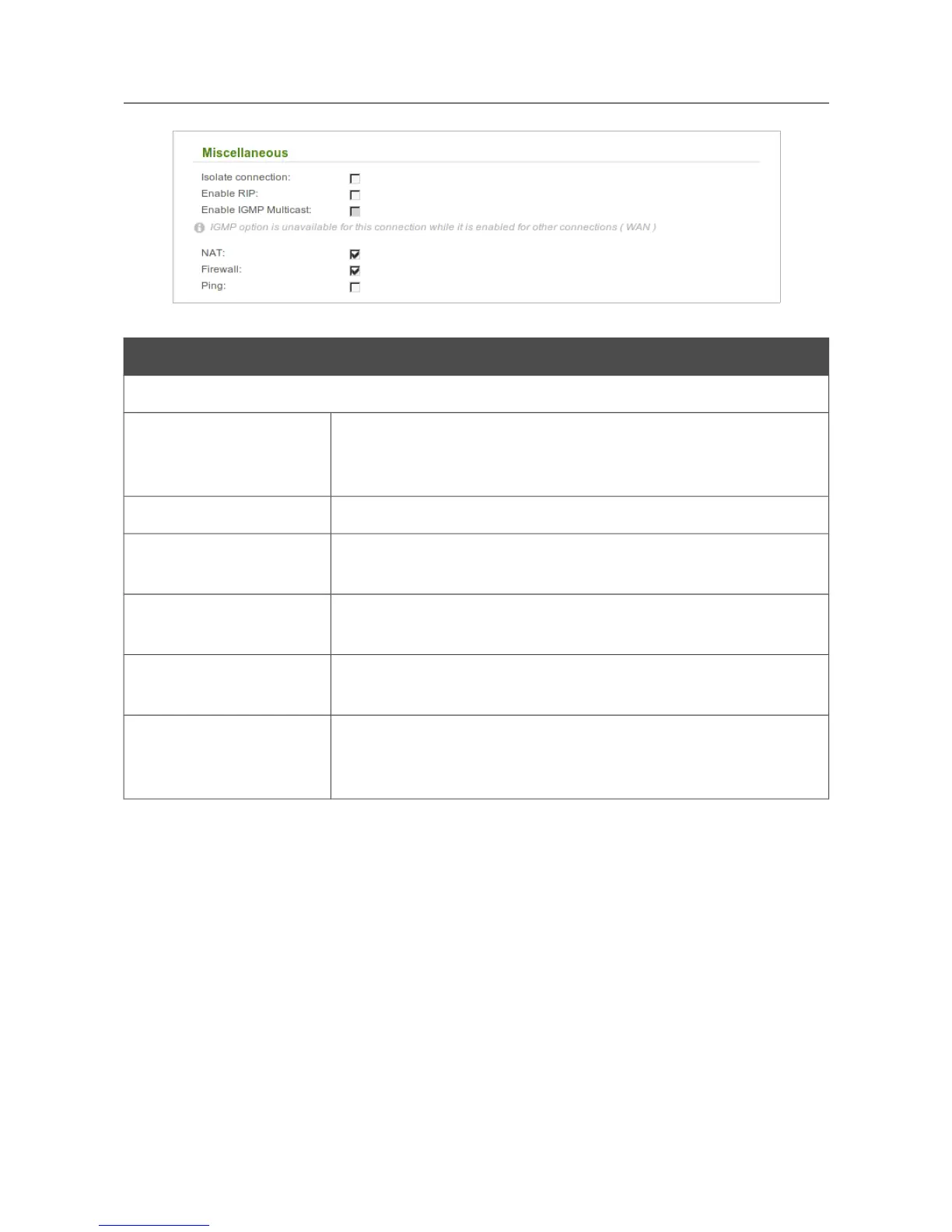 Figure 94. The page for creating a new PPPoE + Static IP connection. The Miscellaneous section.