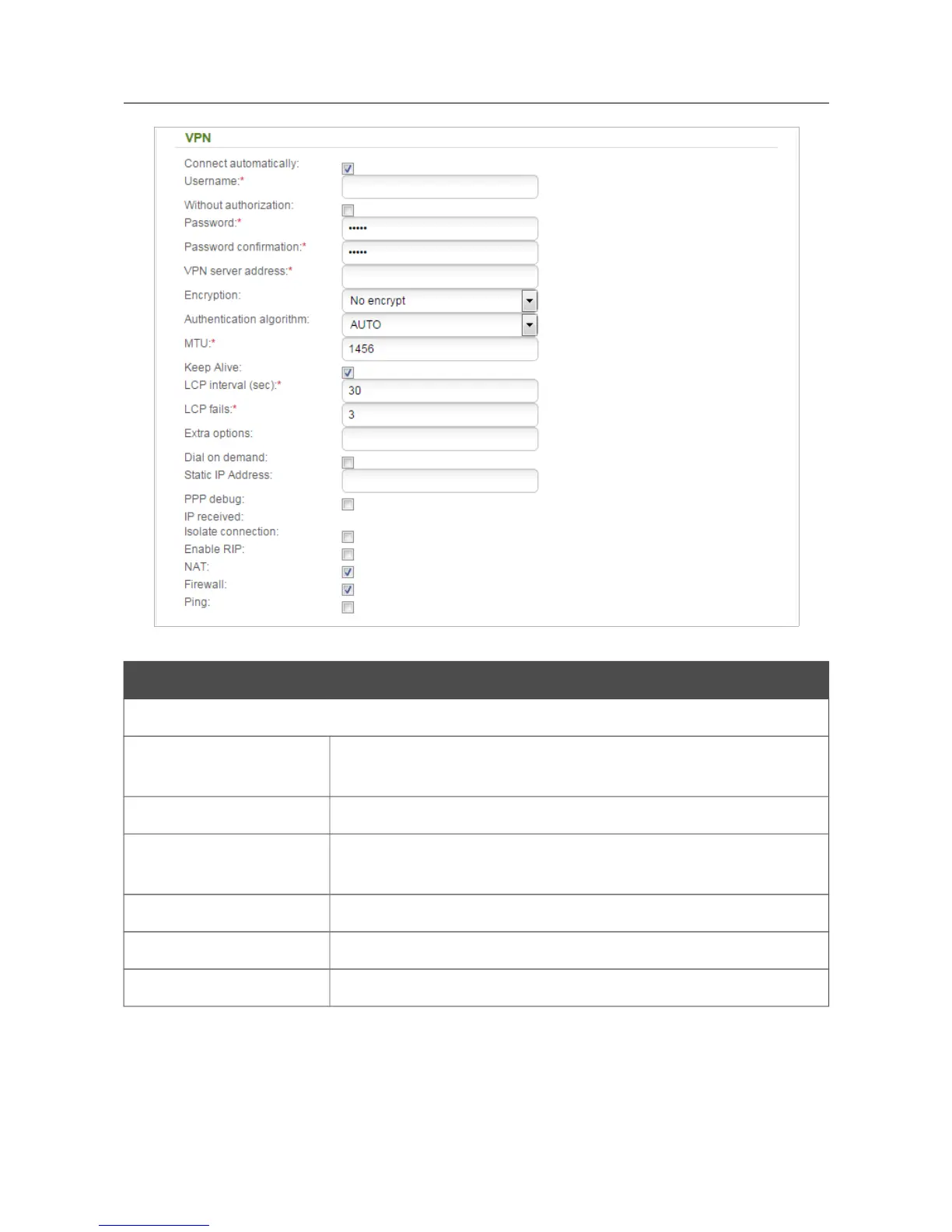VPN server address The IP or URL address of the PPTP or L2TP authentication server.
