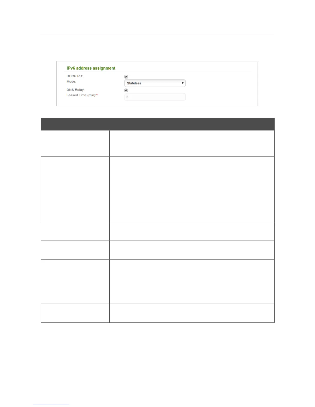 Figure 113. The section of IPv6 address assignment settings.