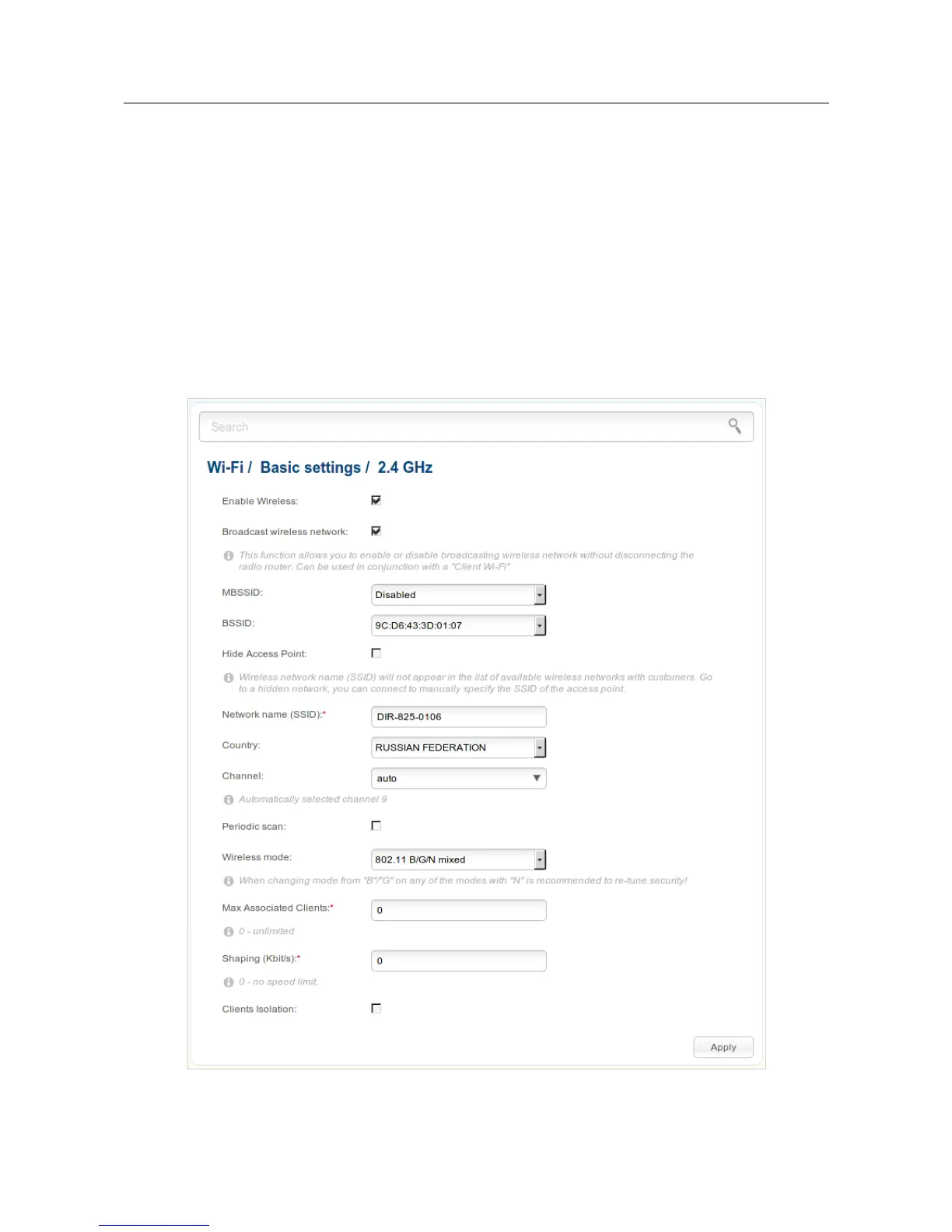 Figure 116. Basic settings of the wireless LAN in the 2.4GHz band.