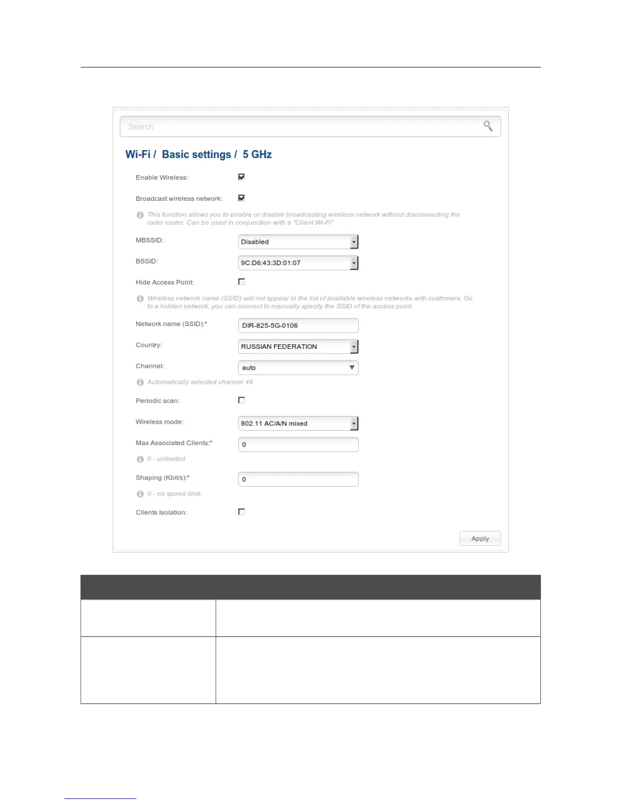 Figure 117. Basic settings of the wireless LAN in the 5GHz band.
