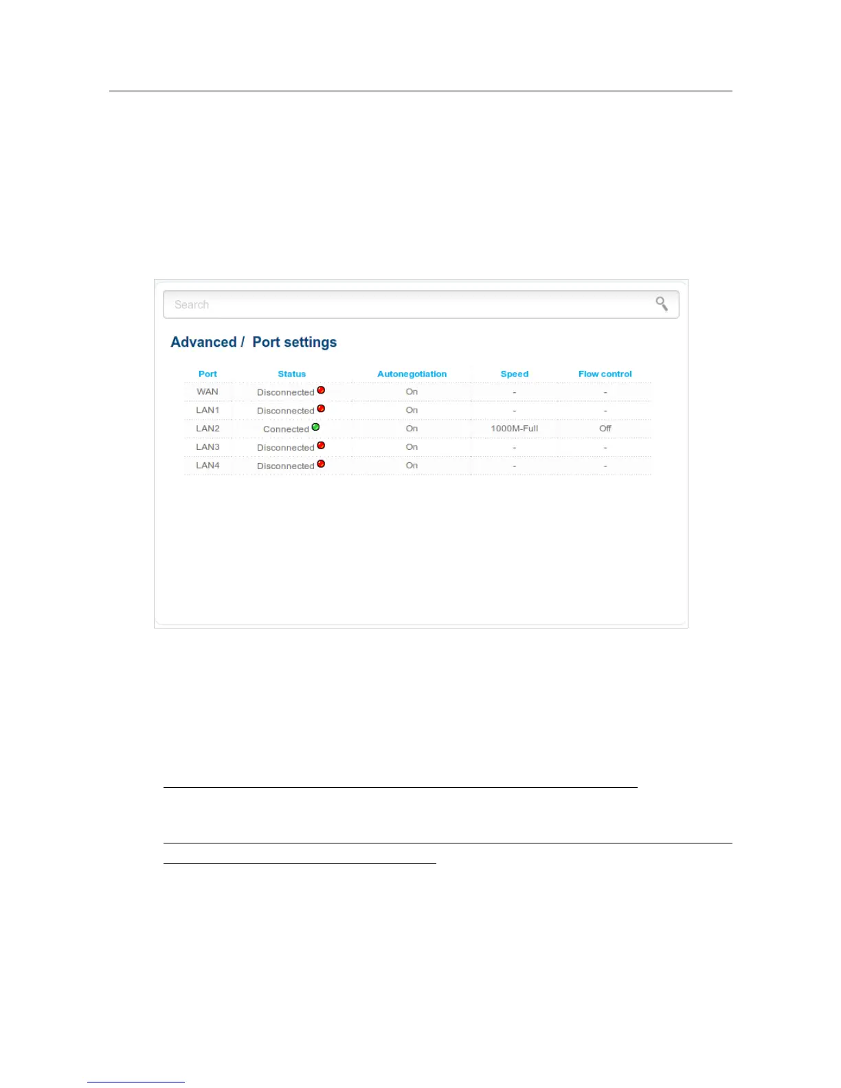 On the Advanced / Port settings page, you can configure or disable autonegotiation of speed