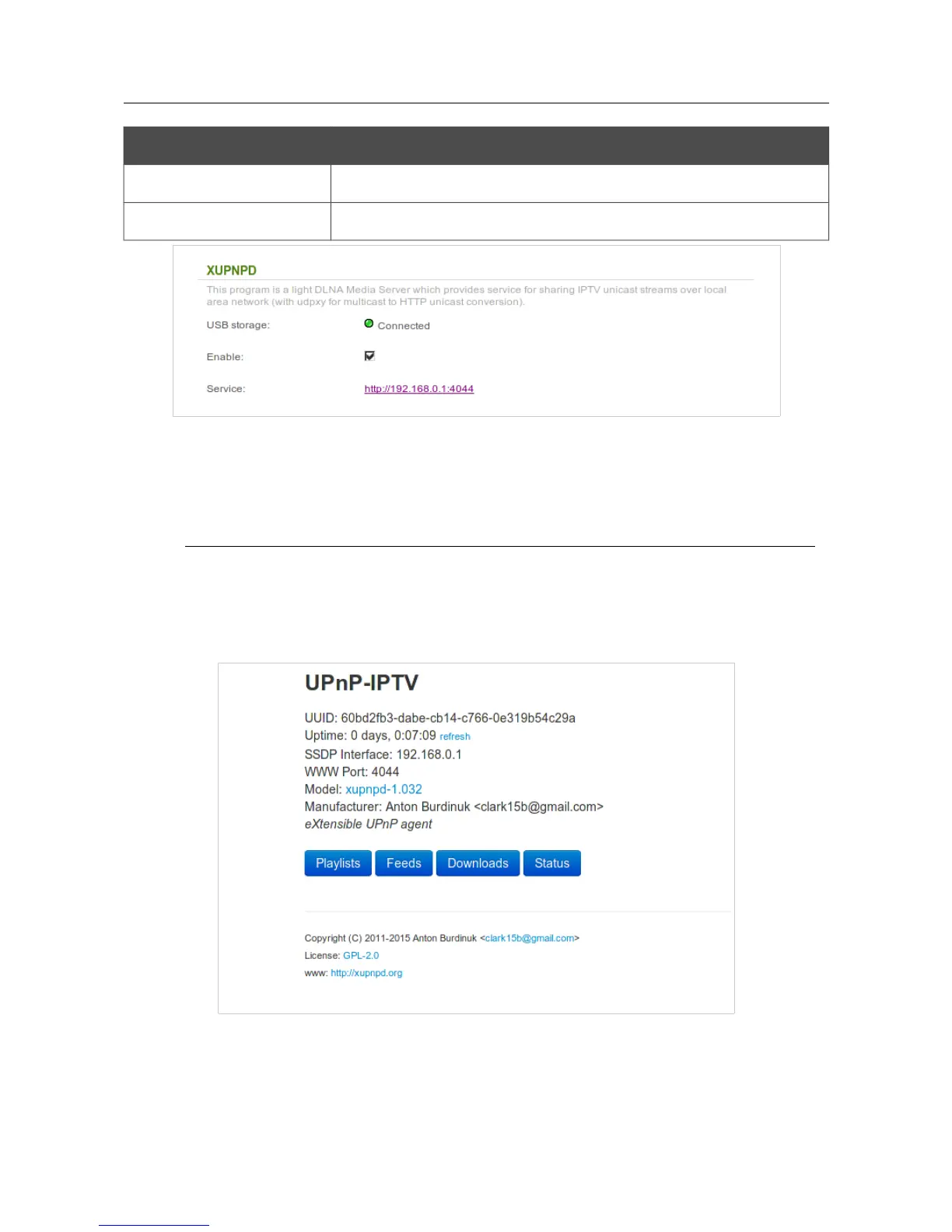 To use the XUPNPD plug-in, connect a USB storage to the router and select the Enable checkbox