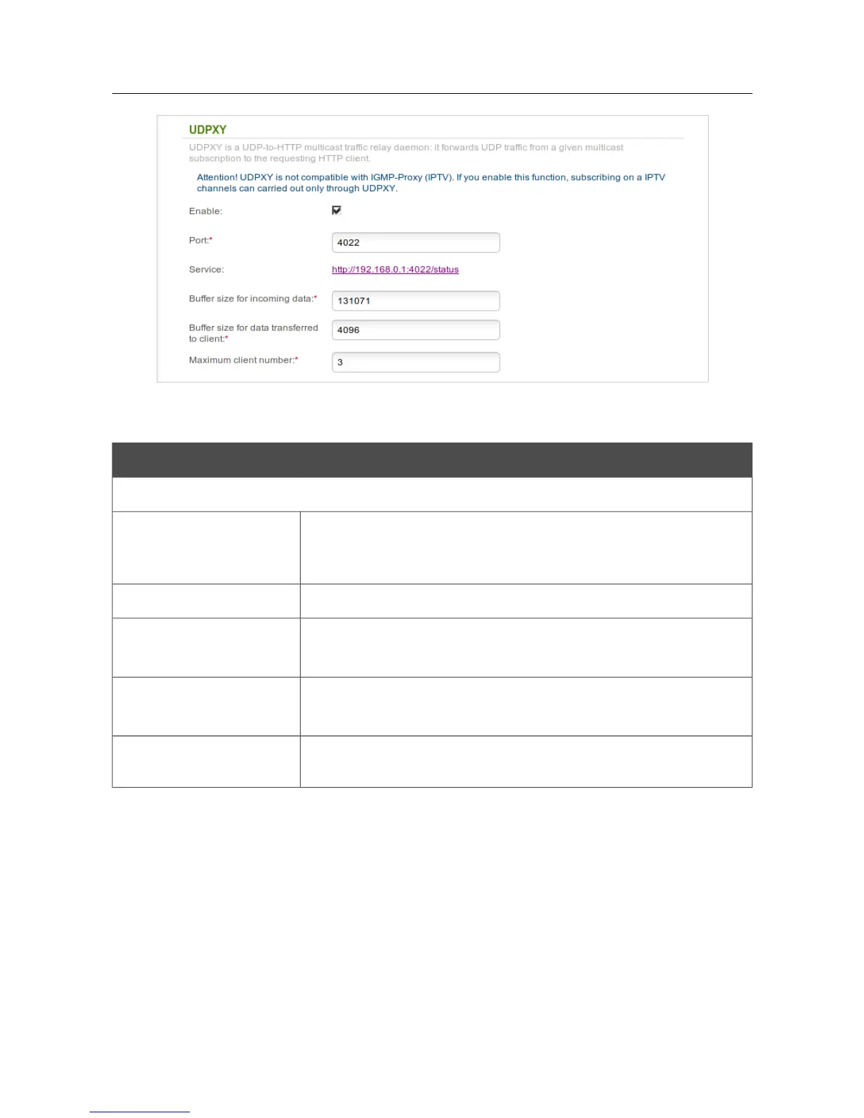 Select the checkbox to enable the built-in UDPXY application.