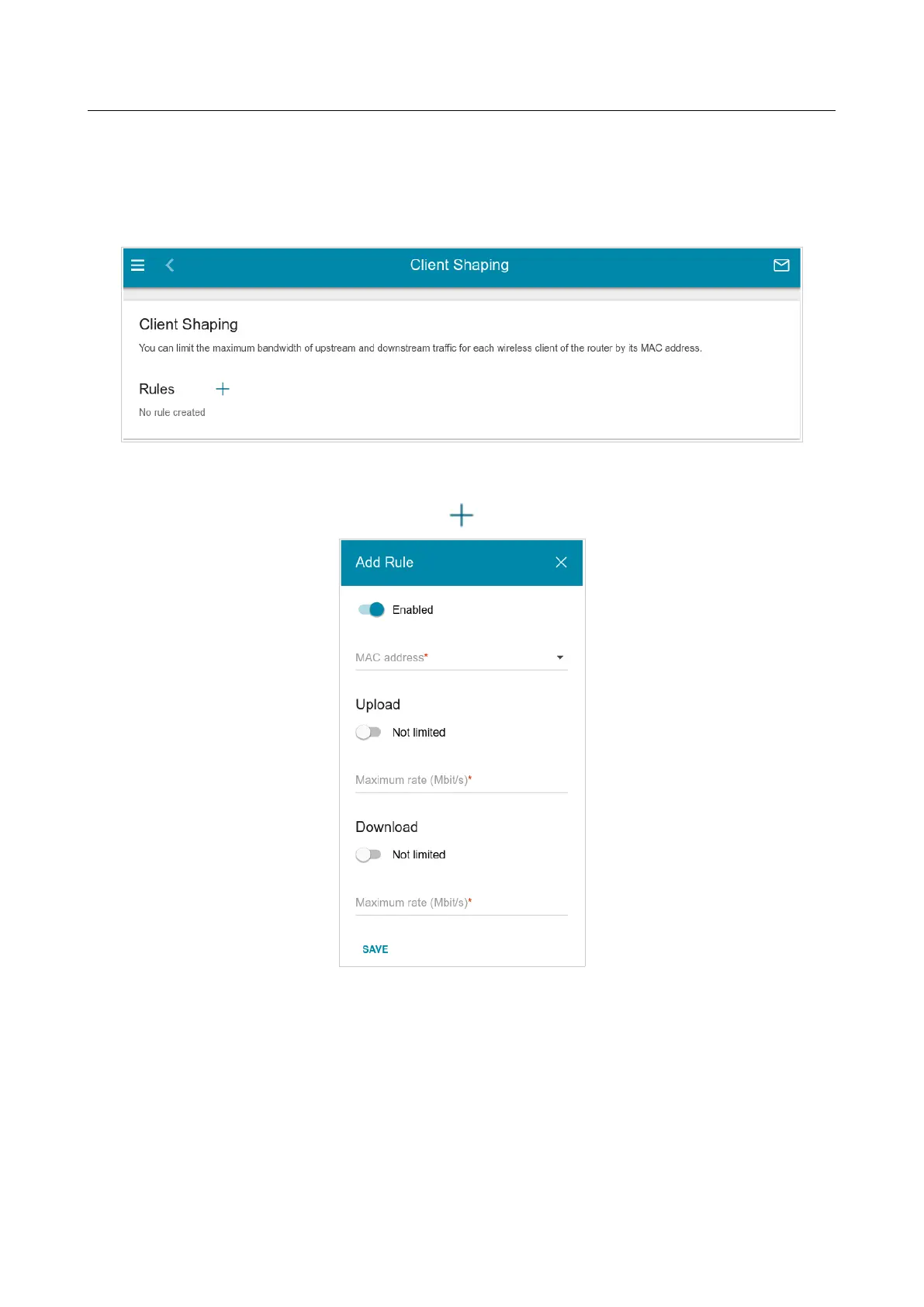 If you want to limit the maximum bandwidth of traffic for the router’s wireless client, create a