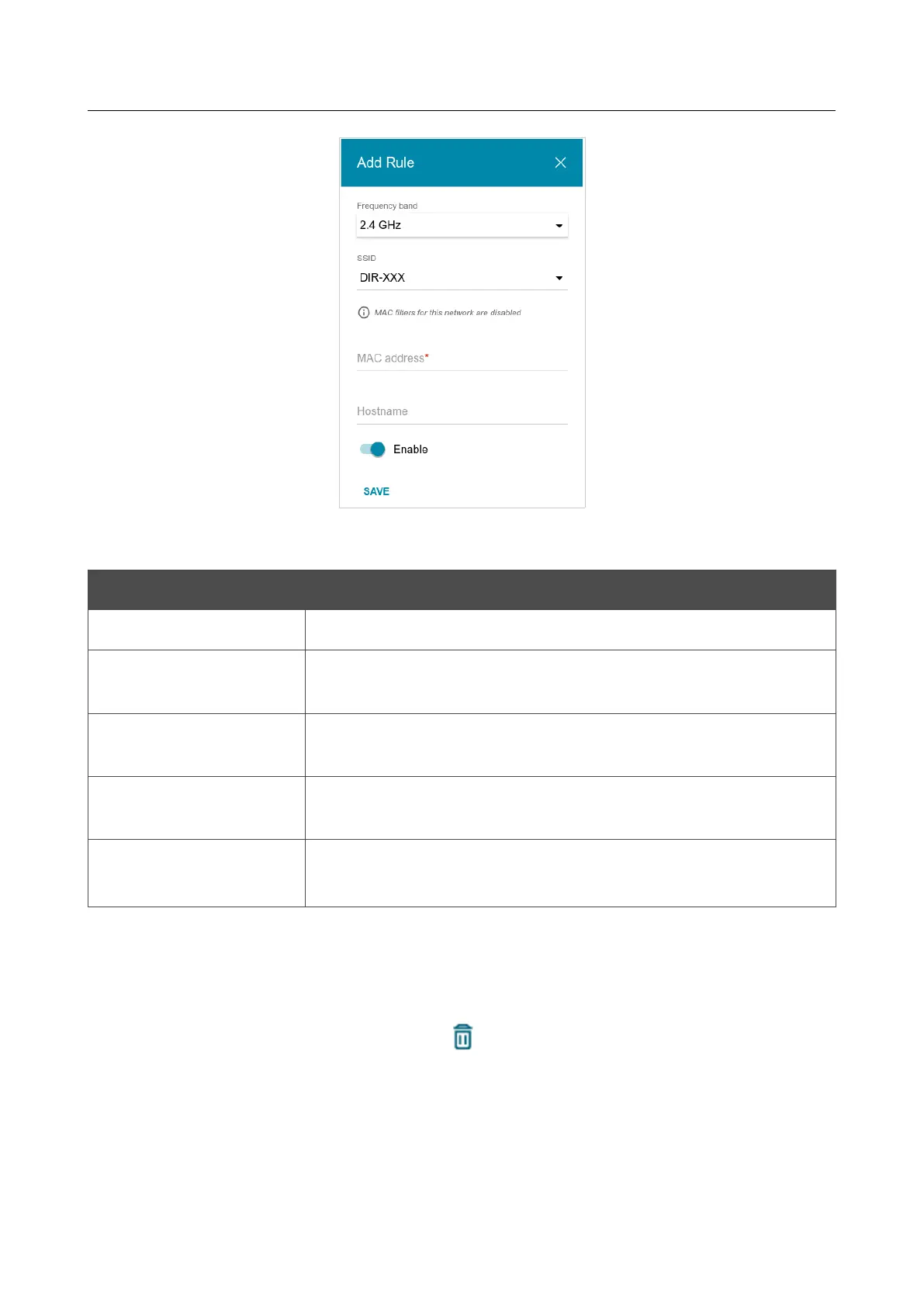 In the field, enter the MAC address to which the selected filtering