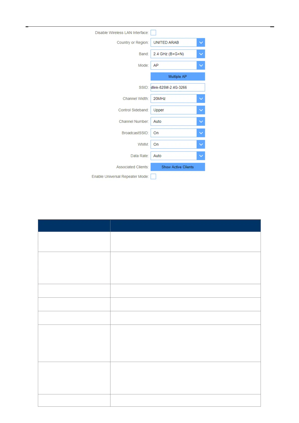 WLAN working mode, such AP, client, WDS and AP+WDS.