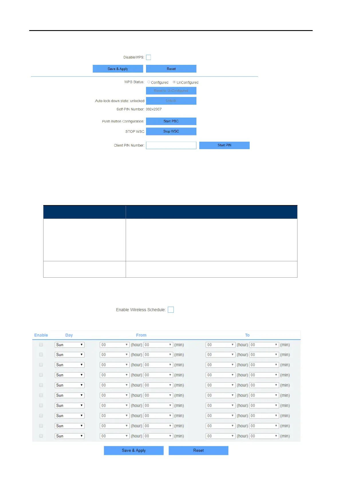 This page allows you to change the setting for WPS (Wi-Fi