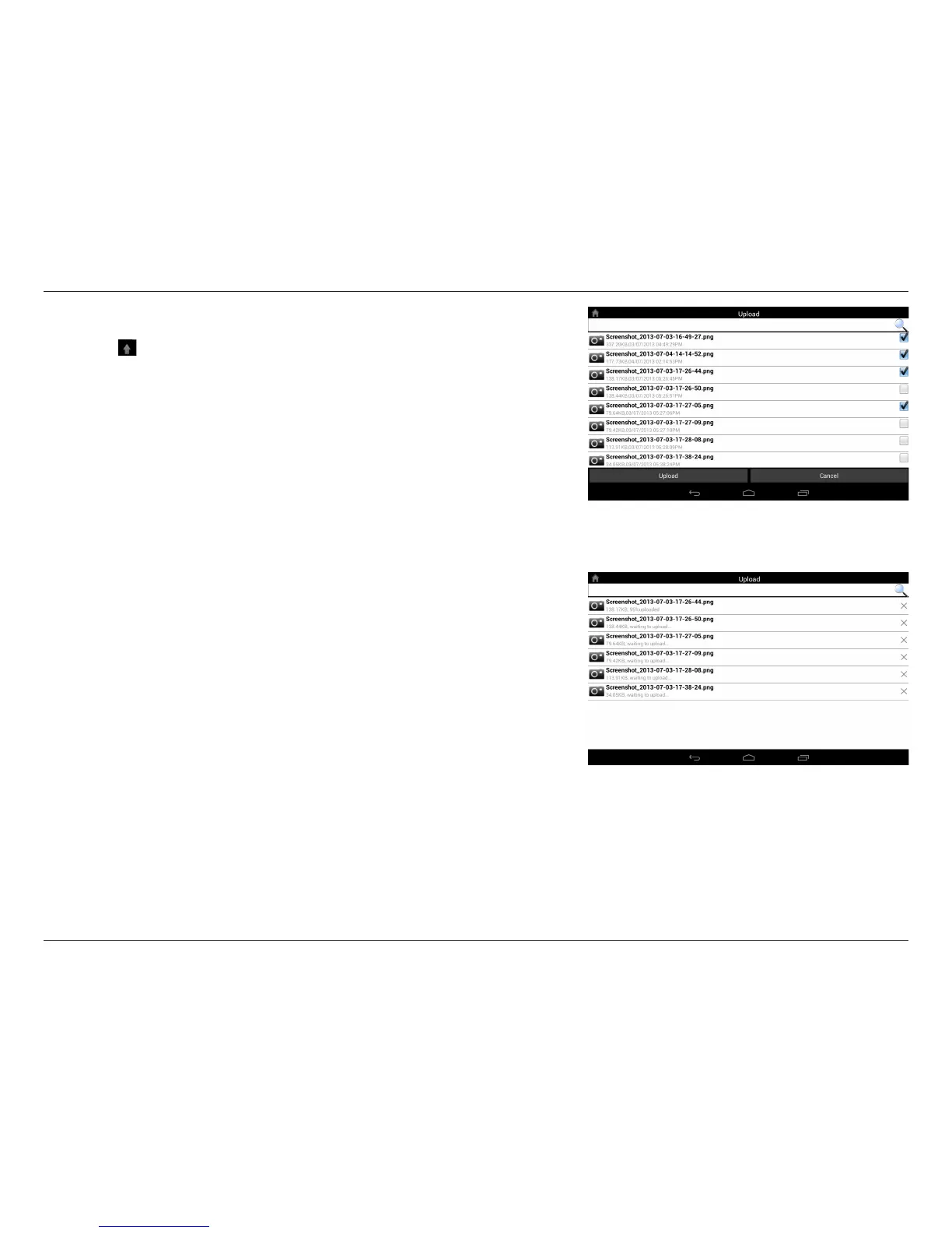• To remove a le from the upload queue, tap the X to the right of the le-